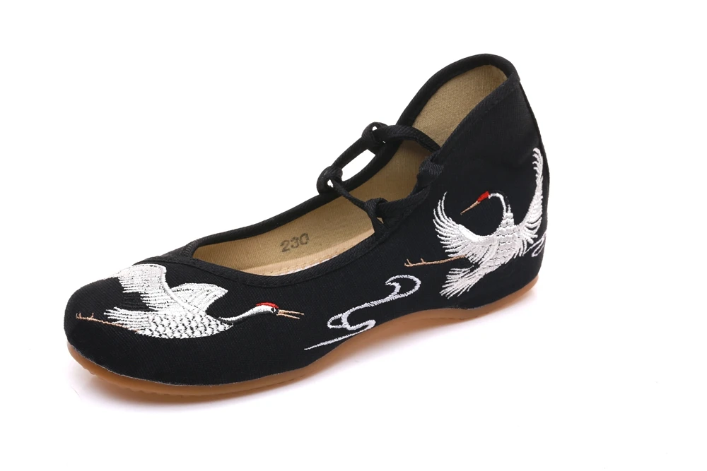 Женские парусиновые балетки Veowalk Crane, с вышивкой, на шнуровке, в китайском стиле, повседневные, из хлопка, с вышивкой