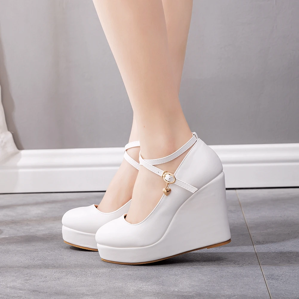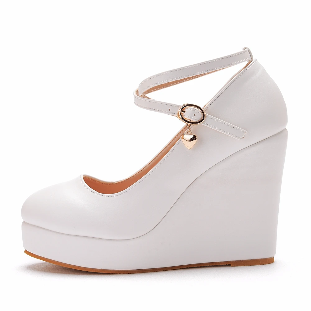 Туфли-лодочки женские белые на танкетке, с круглым носком и перекрестными ремешками на щиколотке