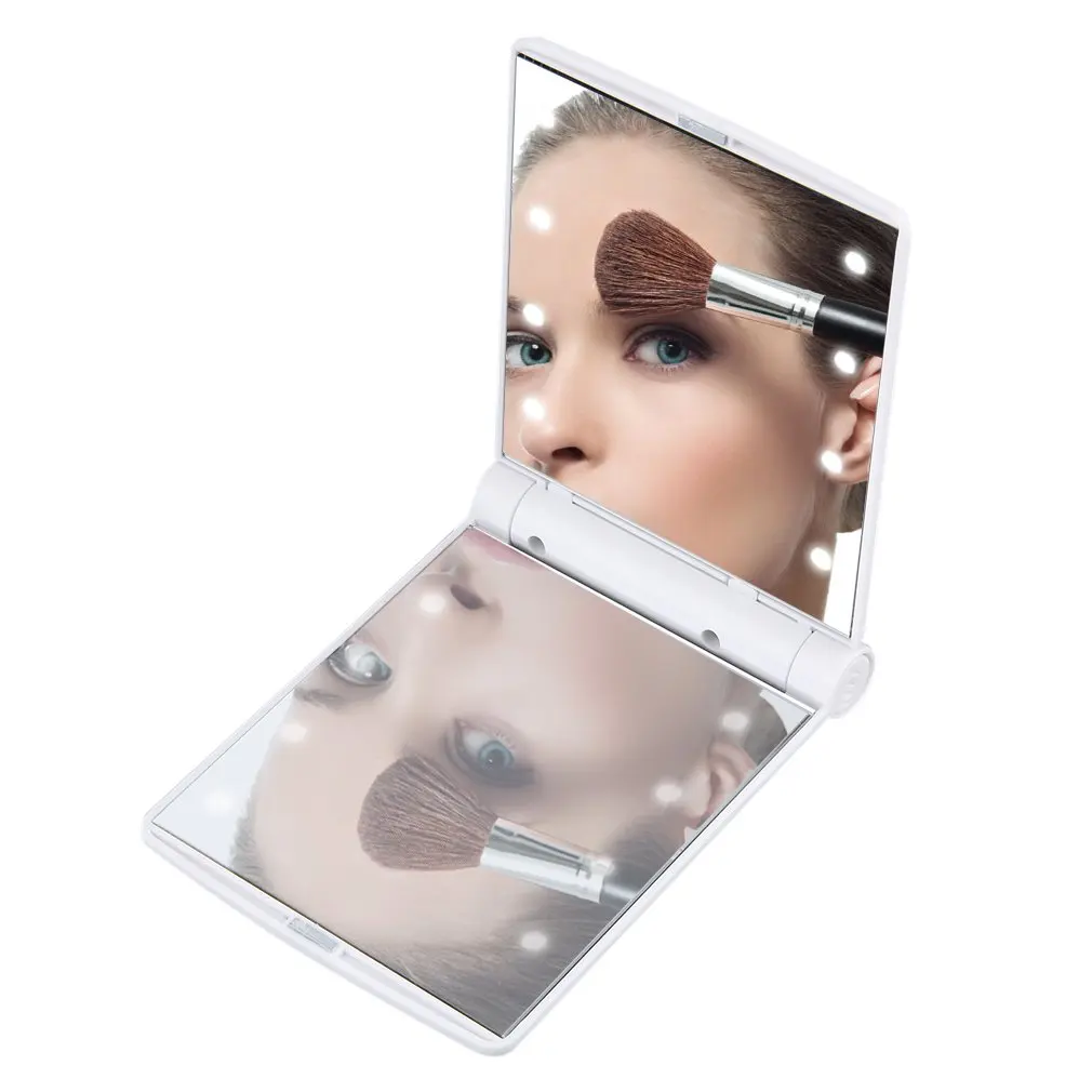 Компактное складное зеркало для макияжа с 8 светодиодами, магнитное открытие, портативное карманное косметическое зеркало для леди, косметическое зеркало для макияжа, инструмент, рождественский подарок