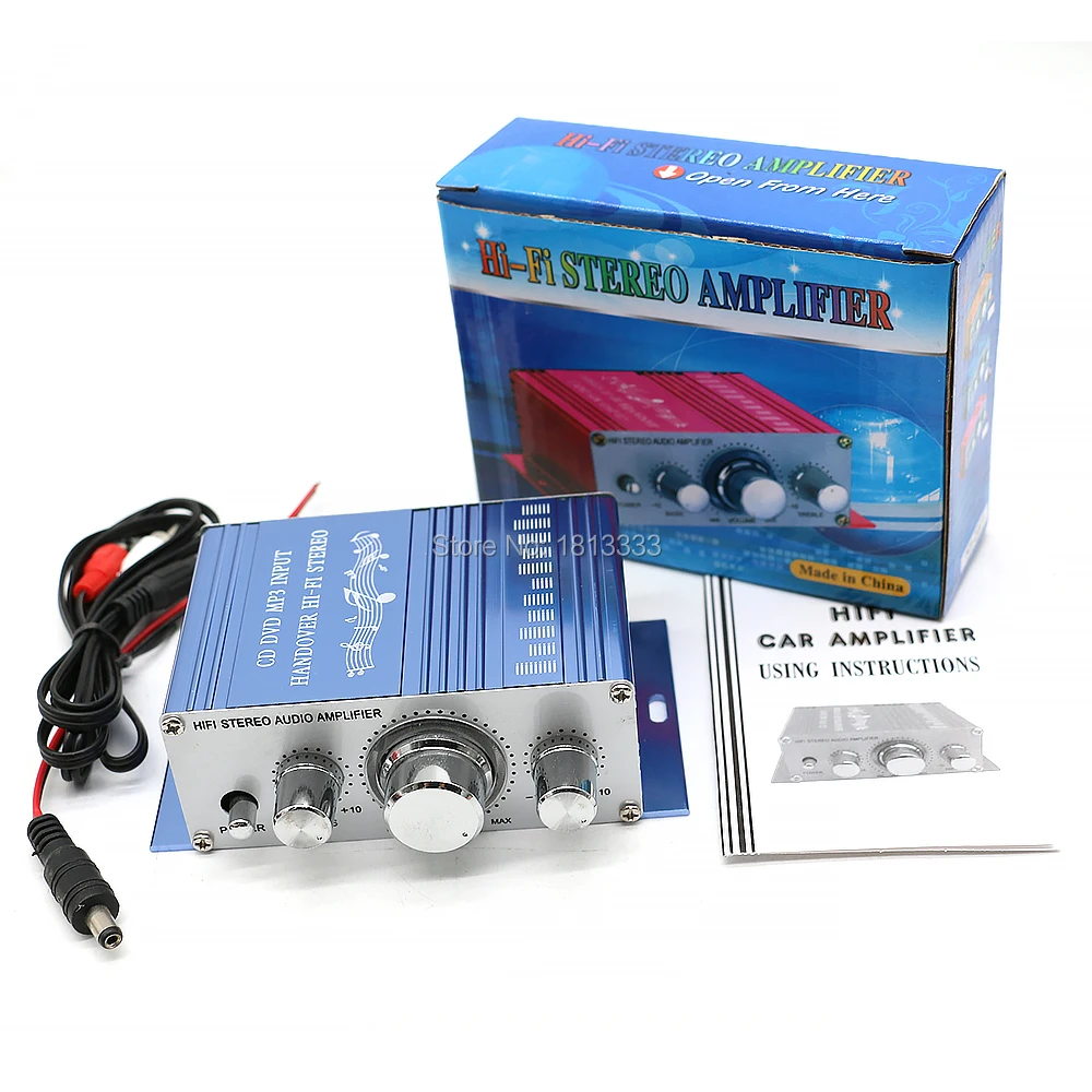 2-КАНАЛЬНЫЙ миниатюрный светодиодный Hi-Fi стерео усилитель, 12 В постоянного тока, DVD, MP3 вход, с кабелем питания, для автомобильного музыкального проигрывателя, аркадная система сделай сам