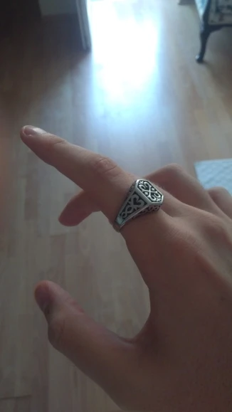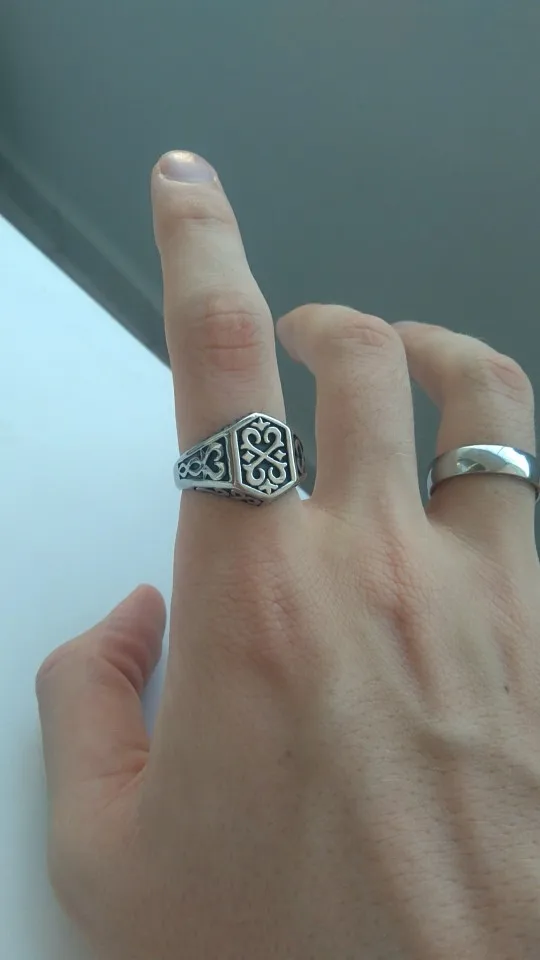 Очень красивое! Практически ювелирная работа. Выглядит лучше чем на картинке. Кольцо полностью литое, внутри без какой либо полости. Размер 8 подошёл как на указательный так и на средний палец