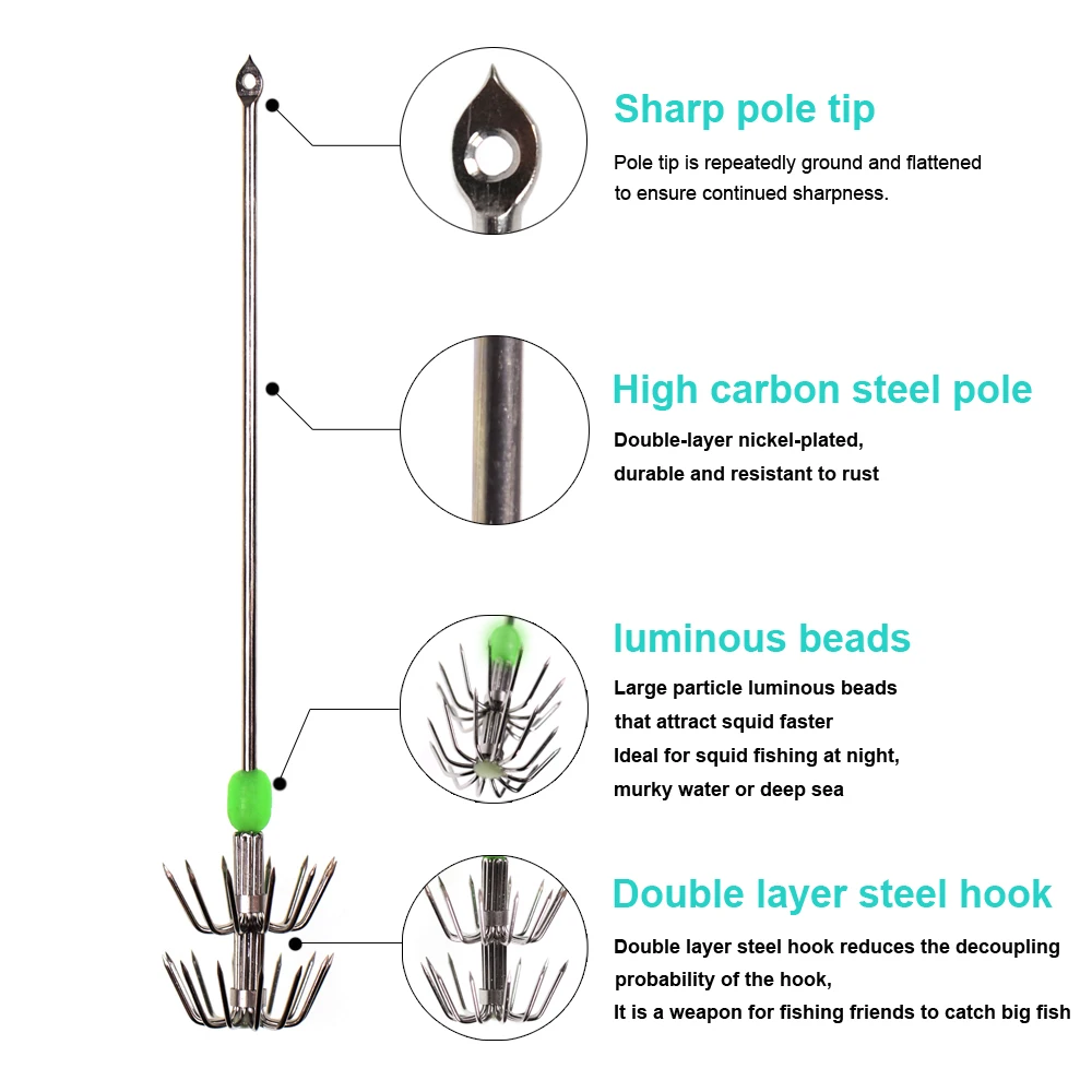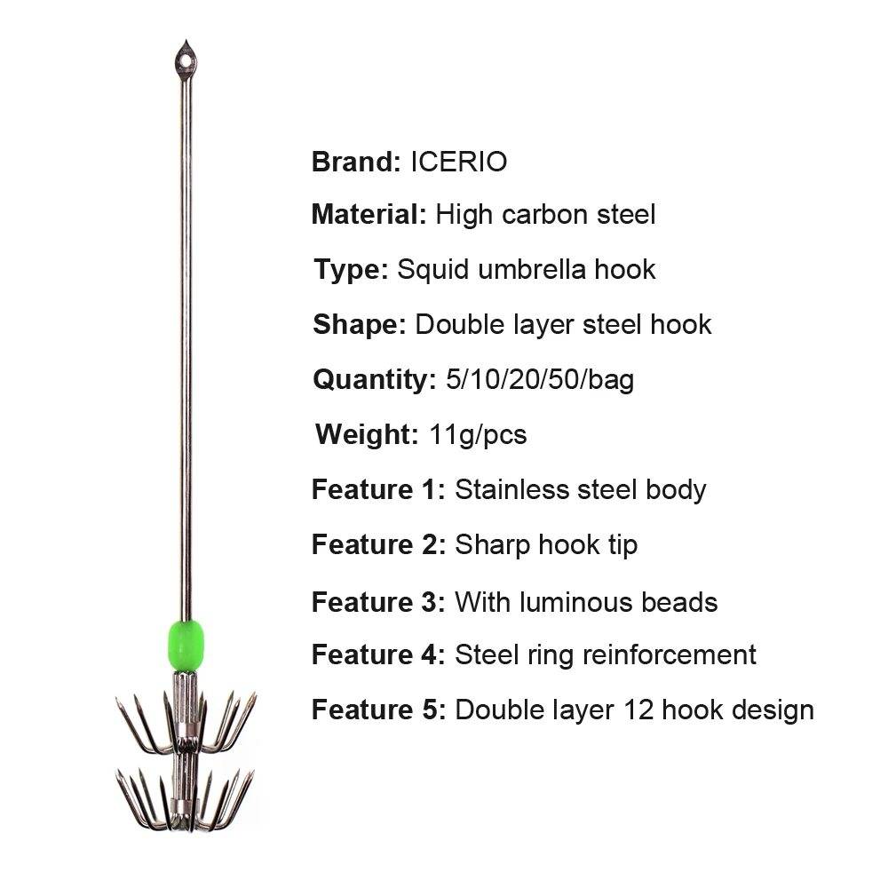 ICERIO 5102050 шт. нержавеющая сталь двухслойный зонтик крючок наживка Каракатица Осьминог рыболовные крючки