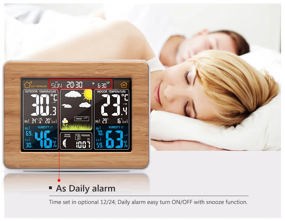 Работает отлично. Это мой второй заказ часов. Очень красивый вид, не выглядит дешево. Хорошо работает. Температура и влажность +-98% правильно.
