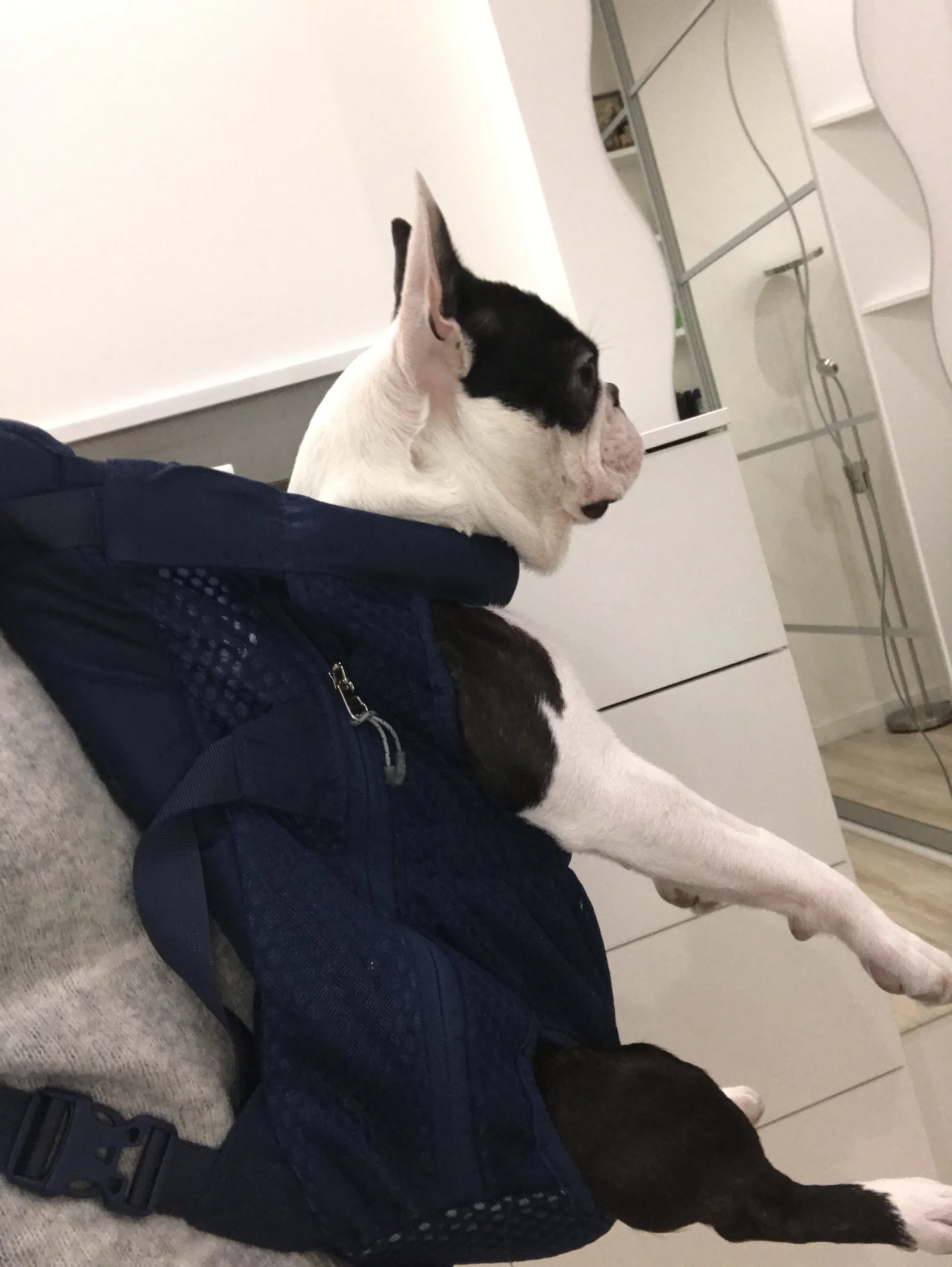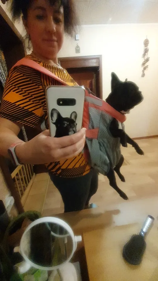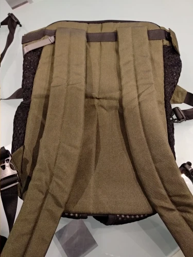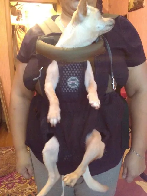 рюкзак очень качественный. снизу мягкая подушечка, в районе писюна подкладка. на спине есть дополнительный ремень. одевать удобно, единственное собака была в шоке) будем привыкать. на чихуа 3,6 кг подошла м, даже немного большевата)