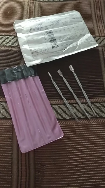 все четыре предмета в пластиковом чехле. металлические. доставка около месяца. спасибо