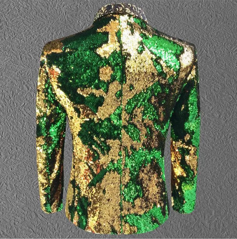 Мужской пиджак с блестками, золотисто-зеленый пиджак, пиджак для выпускного вечера, свадебные наряды для жениха, певицы, черные вечерние наряды