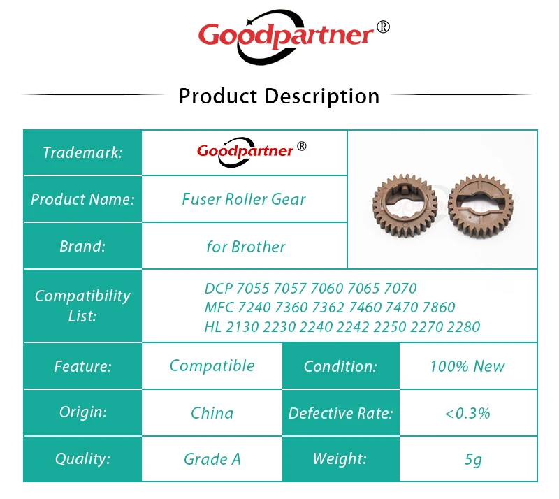 10X Fuser верхний тепловой ролик шестерни для Brother DCP 7055 7057 7060 7065 7070 MFC 7240 7360 7362 7460 7470 HL 7860 2130 2240