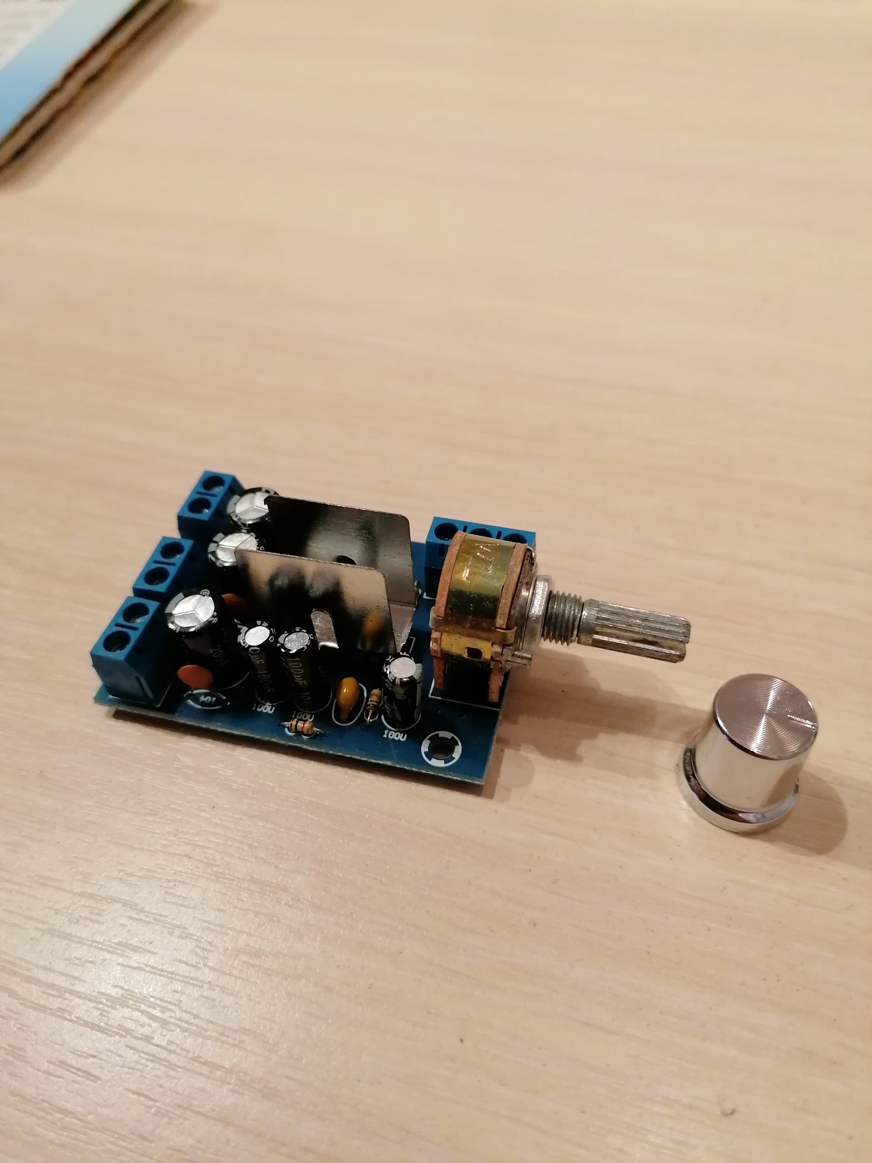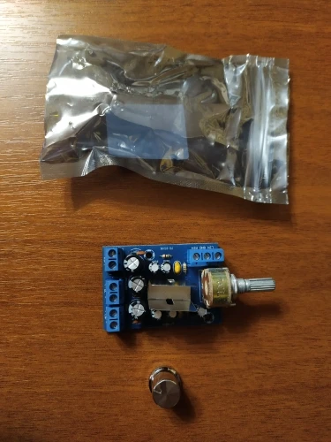 Купил 05.11.20 г., получил 19.12.20 г. Плата усилителя упакована в бумажный пакет, что не надёжно, не защищает от повреждений. На какой-то стадии доставки получила вмятину с краю и наклоны конденсаторов. Отработала для проверки с динамиками по 3 W, 8 Ом и адаптером 9 V, 0,6 A 5 часов без нагрева обоих.