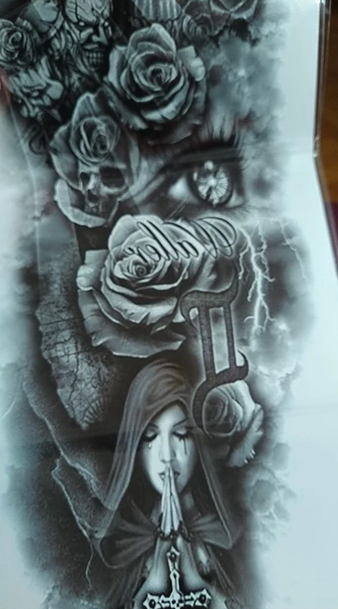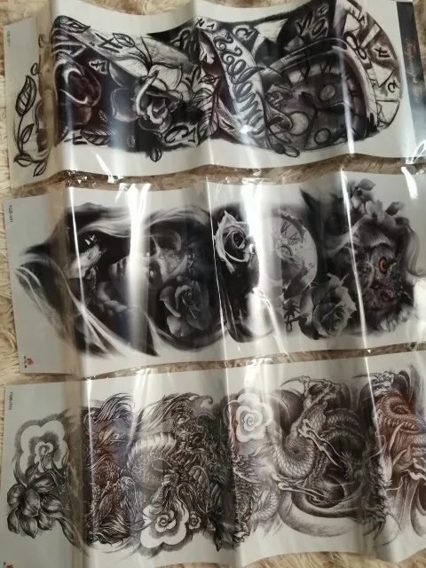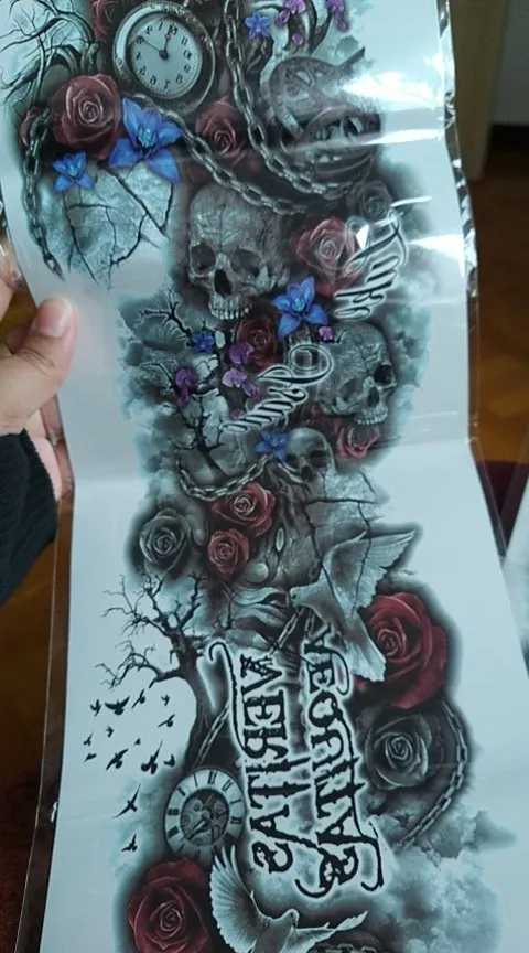 Большие рукава для защиты рук Татуировка непромокаемая временная татуировка Стикеры Череп ангел розового лотоса Для мужчин с цветочным рисунком тату боди-арт Девушка с татуировкой