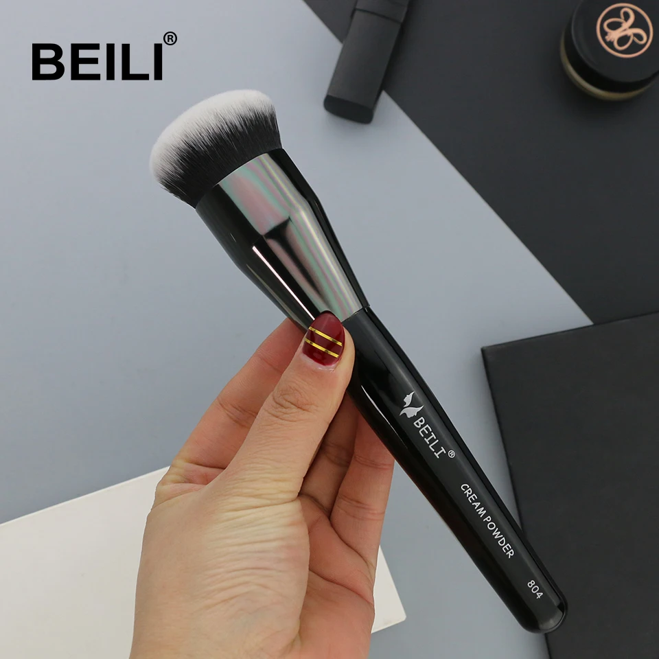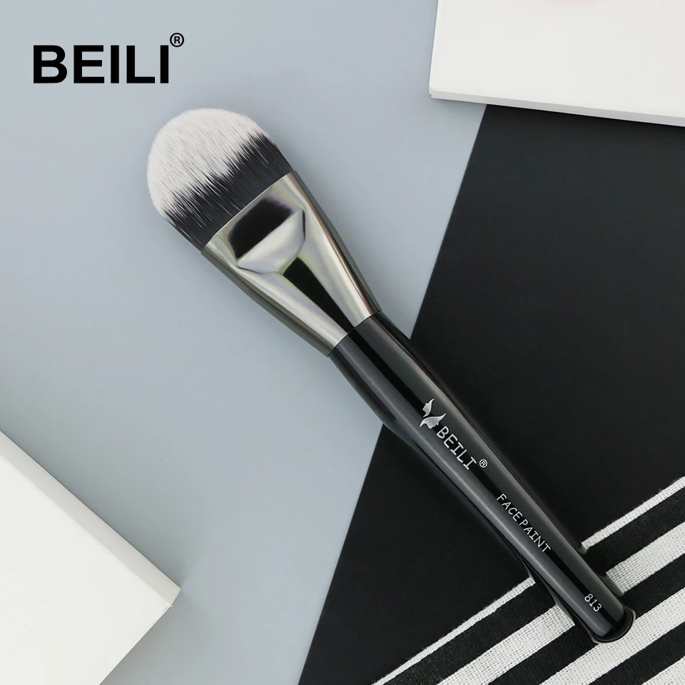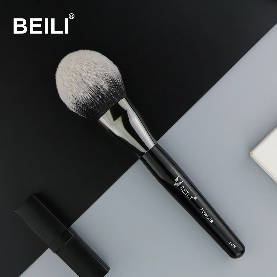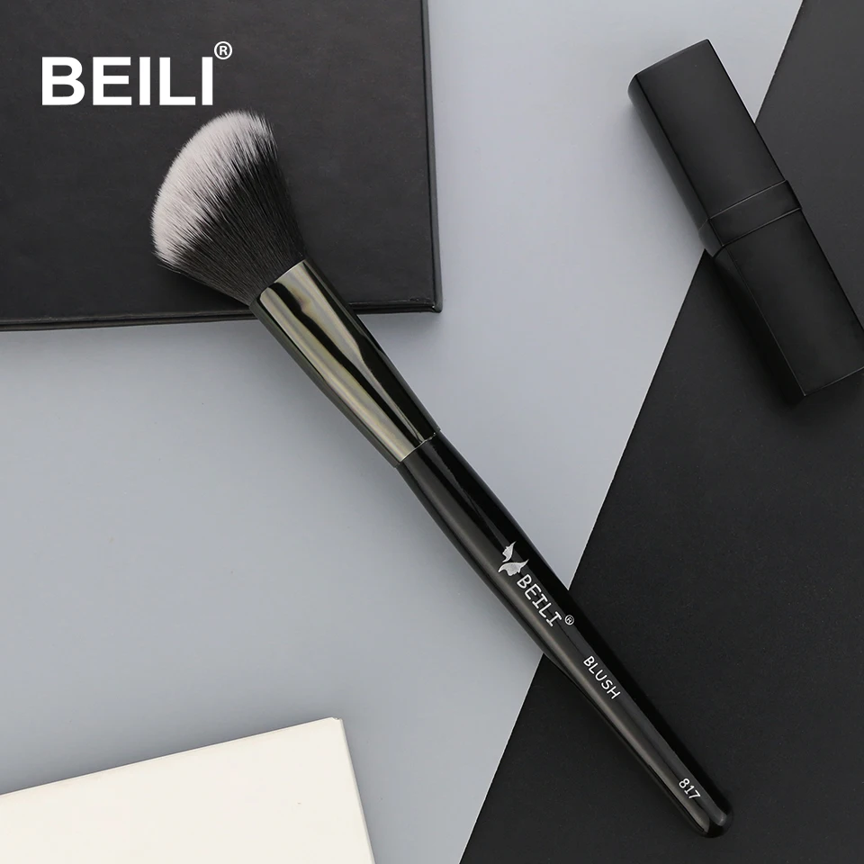 Кисть для макияжа BEILI Black, большая кисть для пудры, румян, мягкий синтетический ворс, кисти для макияжа, хайлайтер, веерные Контурные инструменты