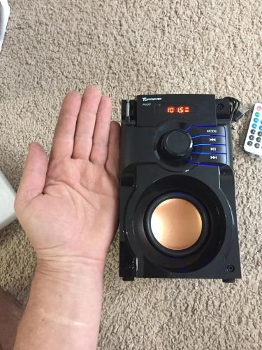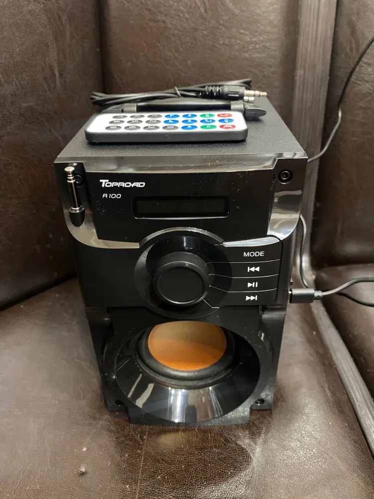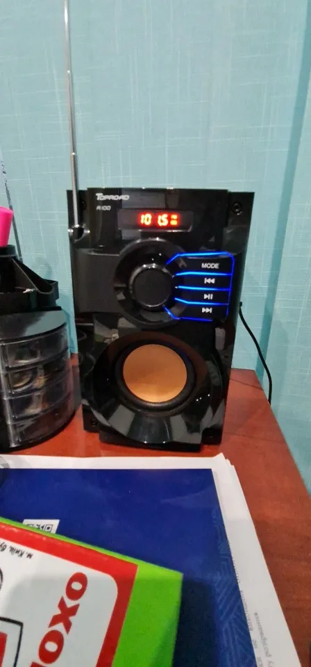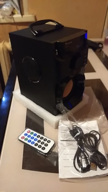 Сенсационное оборудование. Радио и дистанционный динамик в очень хорошем выпуске. Звук динамиков чистый с хорошими басами. Оборудование стоит рекомендовать. Размер правильный. Я очень доволен своей покупкой.