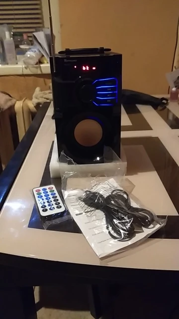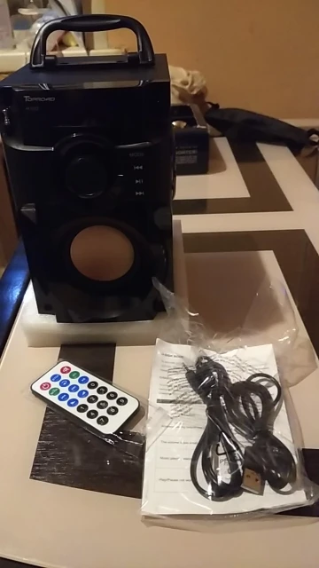 Пришла очень быстро , надёжно упакована . Кто пишет ,что нет басса ,для вас придумали пульт где есть кнопочка EQ (это эквалайзер) третья и первая фазы и есть басс, а теперь о колонке , я очень привиледливый к колонкам ,сменил около двух десятков, но эта меня удивила ,для своего размера достаточно громкая , звук чистый , это прям как акустическая система с сабвуфером , только в маленькой коробочке все вместе))) блютуз отлично ловит ,радио хорошо работает даже не доставая антенну. Вообщем рекомендую.