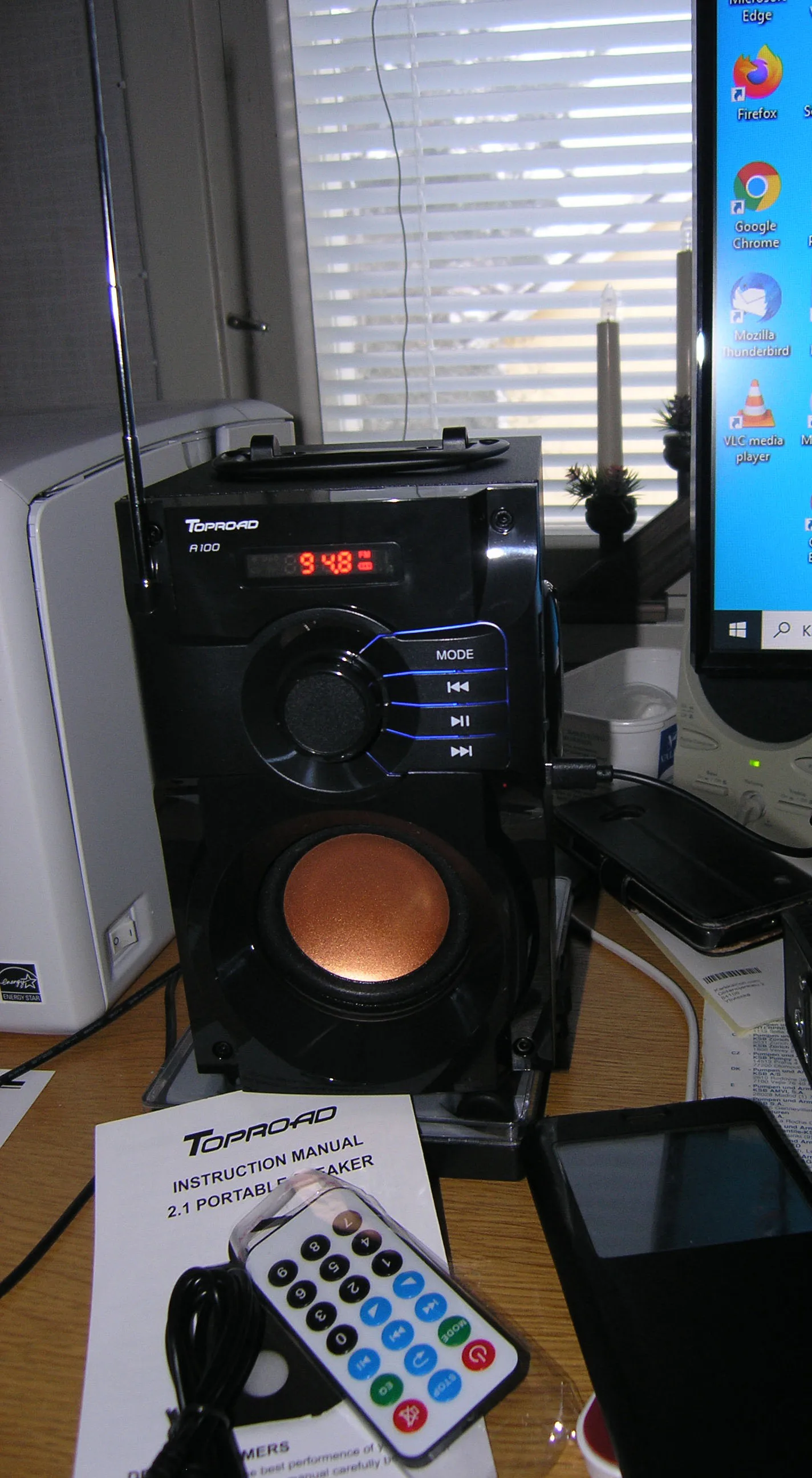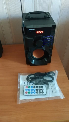 ура, получил колонку!!!! 15 дней шла в подмосковье! упаковано хорошо, правда немного упаковка помята!!! но колонка в порядке! включил, радио ловит норм, блютуз с телефона работает, пульт пашет. аукс тоже пашет. качество хорошее, цена соответственно!!! спс огромное!