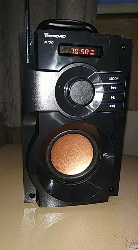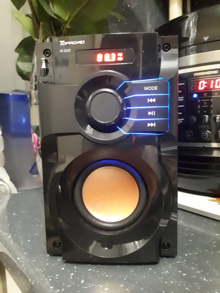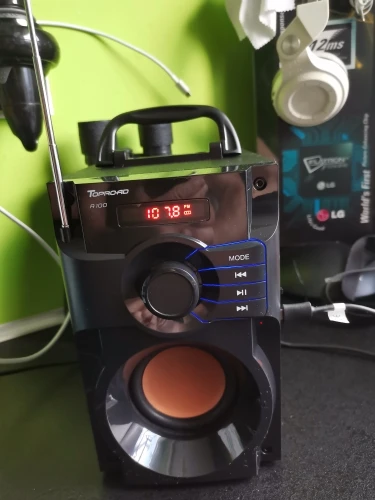 Отличная маленькая колонка! Звук громкий, четкий на любой громкости. Фазоинвертор работает как надо, басы отличные. Радио ловит на ура. У меня без внешней антенны на любом радиоприемнике ловится только одна местная радиостанция, этот на свою маленькую телескопичку поймал 5. Из минусов - не нашел (а может и нет) рандомного воспроизведения в флешки.