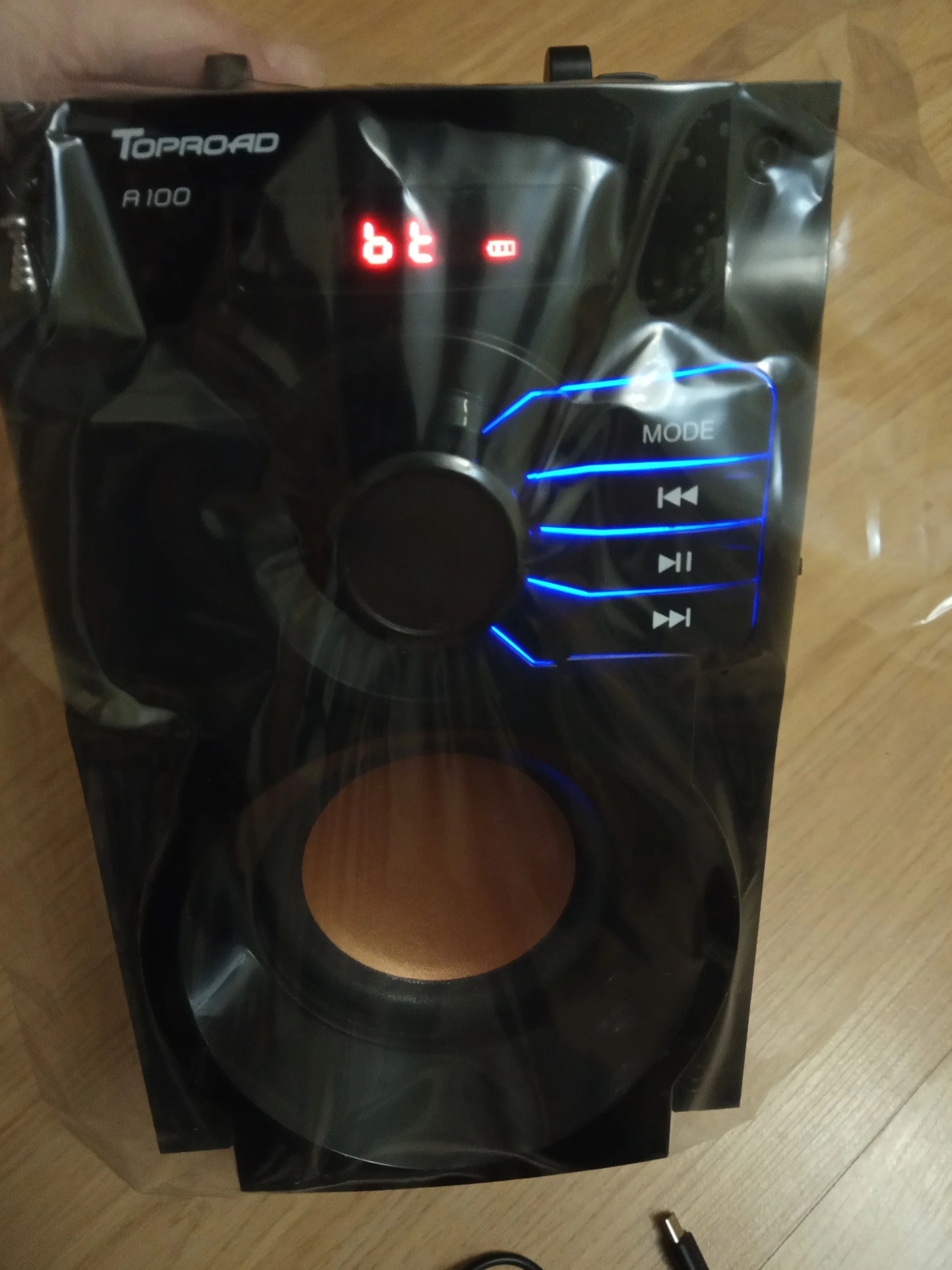 К сожалению товар был поврежден на почте. Продавец вернул часть денег. Сама колонка неплохая а вот пульт работает на небольшой дистанции и срабатывает только пряма, под углом у меня не срабатывает.