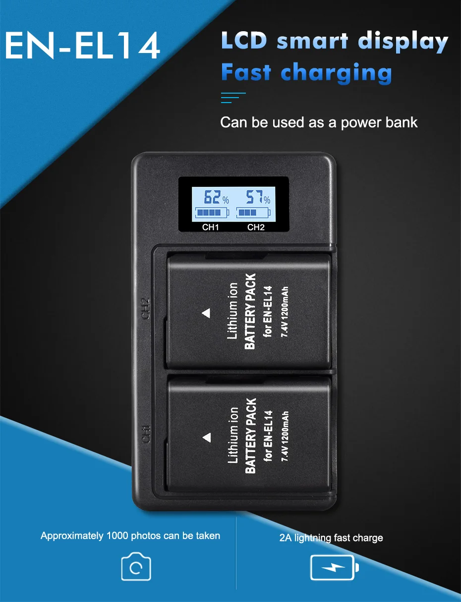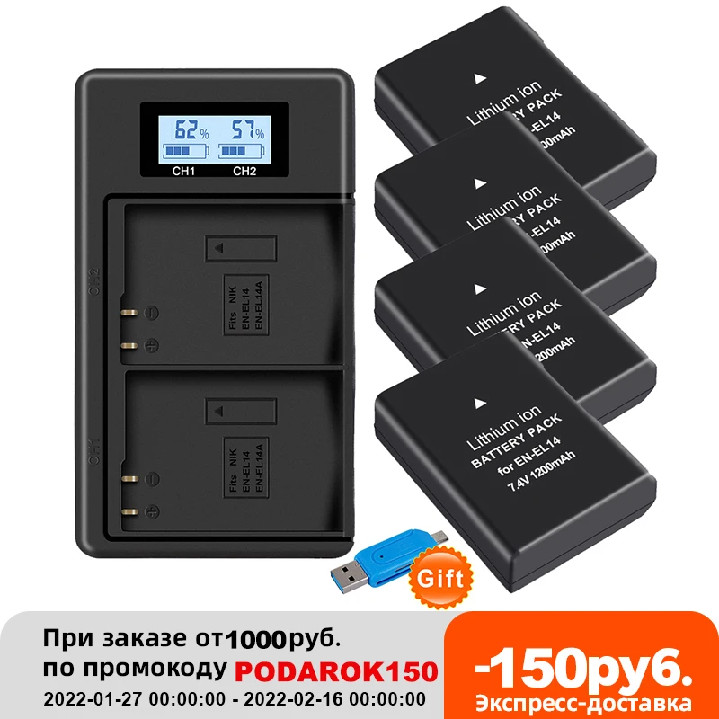 EN-EL14 EN-EL14A ENEL14 EN EL14 для Nikon D3100 D3200 D3300 D3400 D3500 D5600 D5100 D5200 P7100 P7200 P7800 + зарядное устройство с ЖК-дисплеем