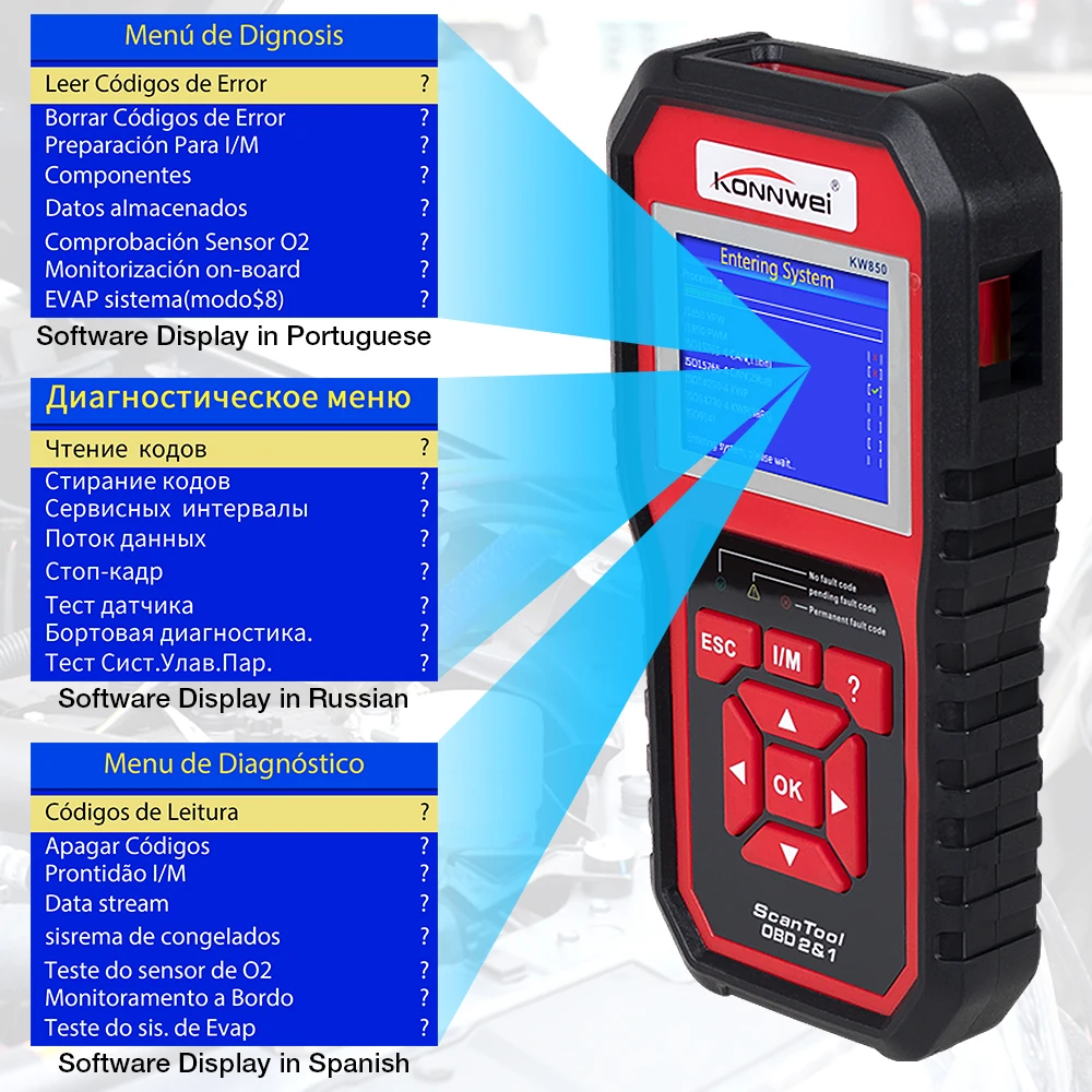 Полная информация о функциях KONNWEI KW850 OBDII: