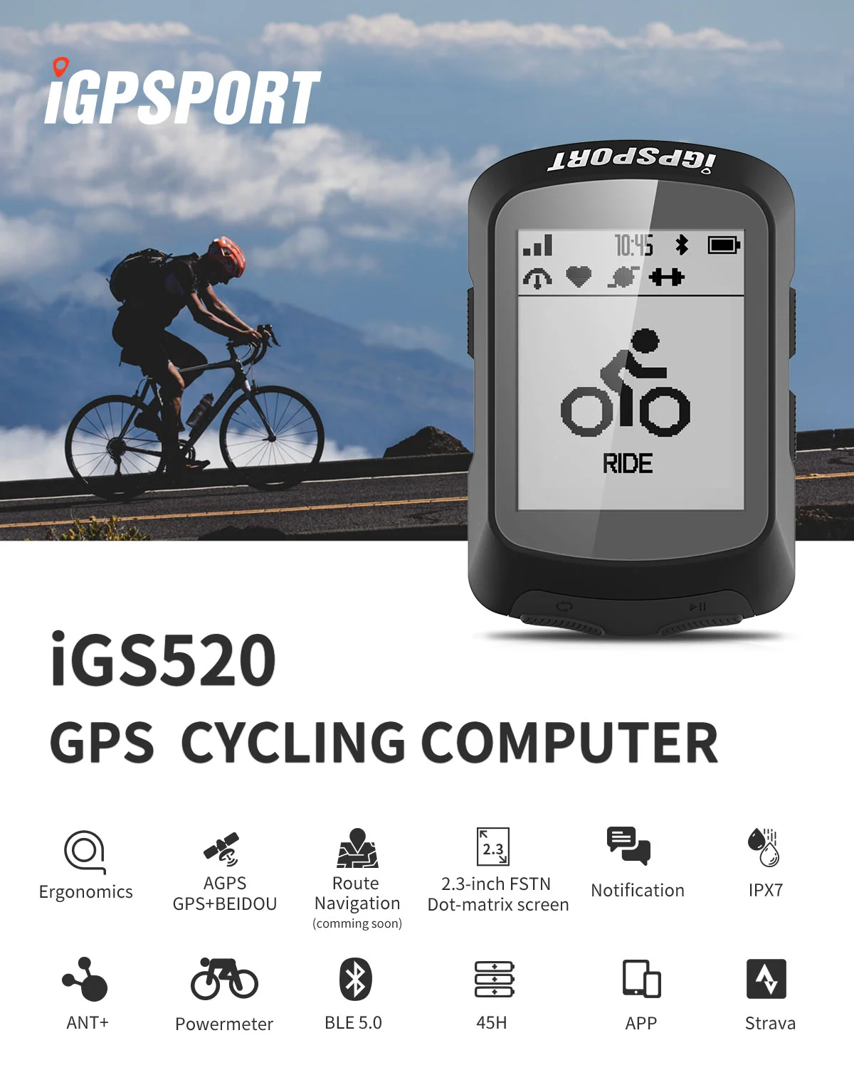 2,3-дюймовый-суперскрученные нематические элементы точечно-матричный экран, обеспечивает более 80 предметов данных на выбор, с переключением между дальним и страница максимальное Отображение данных 8; Точное позиционирование, поддержка GPS + Beidou режим; Большая емкость аккумулятора, срок службы батареи до 45 часов; Протокол передачи Bluetooth и ANT +, поддержка счетчика мощности, более богатый дисплей данных; Навигация по waypoint; Облачная платформа обеспечивает обмен данными на велосипеде и более детальный анализ.