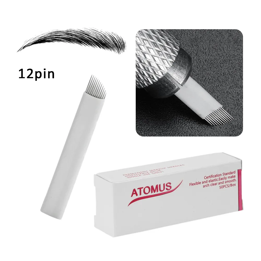 100 шт. 12 штырьков иглы для перманентного макияжа бровей микроблей...
