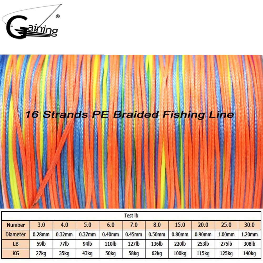 Набирающая бренд рыболовная леска 16 нитей плетеная PE леска 1000 м многоцветная супер прочная японская многонитевая PE плетеная леска 59LB-308LB