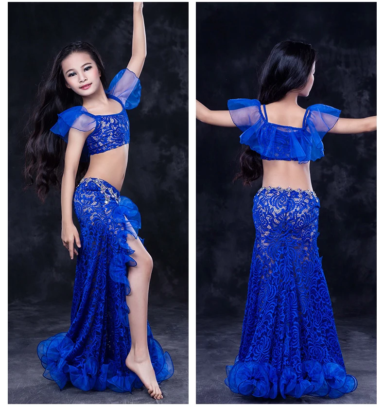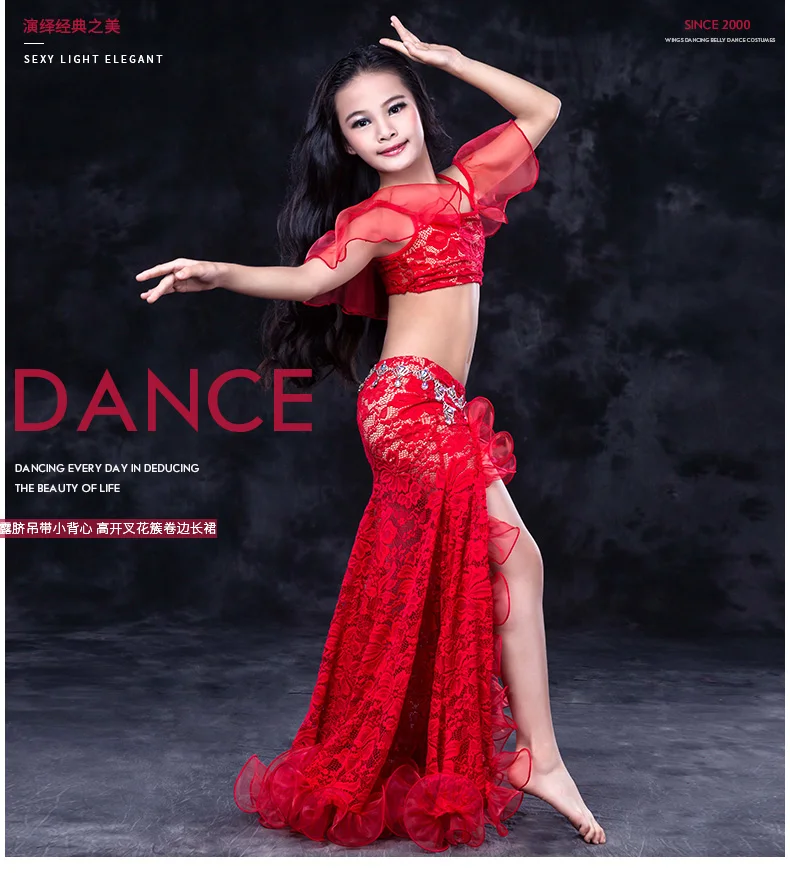 Девушки Танцы Живота Одежда Роскошный Топ Без Рукавов + Кружева Сплит 2 шт. Детский Танец Набор Дети Костюм Танец Живота S, M, L