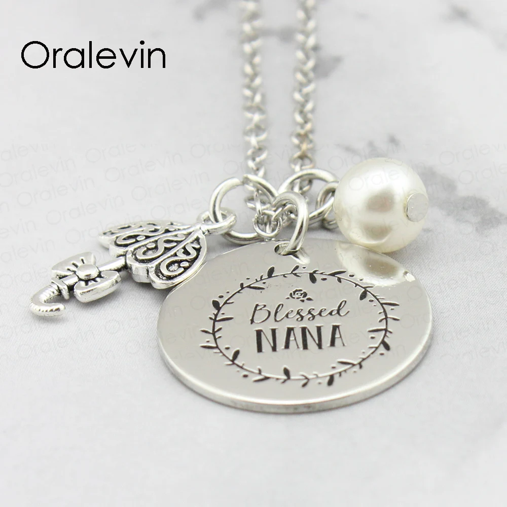 Подвеска BLESSED NANA, ожерелье, подарок для бабушки, ювелирные изделия, 10 шт.лот # LN514