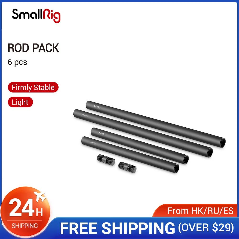 Стержни SmallRig 15 мм в упаковке с резьбовыми соединителями M12, стержни из алюминиевого сплава для Mattebox Follow Focus 15 мм Rod System - 1659