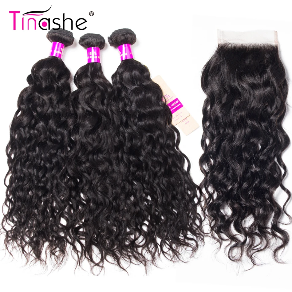 Tinashe волосы волнистые пучки с закрытием Remy бразильские волосы плетение пучки человеческих волос 3 пучка с закрытием