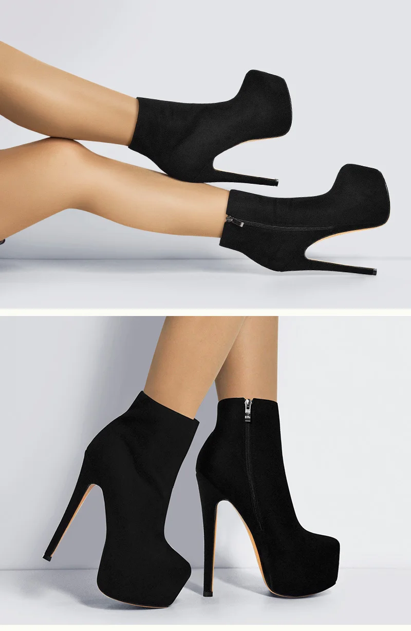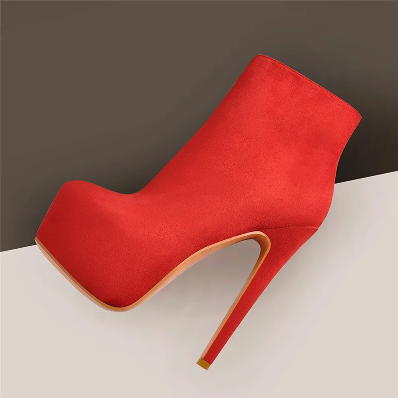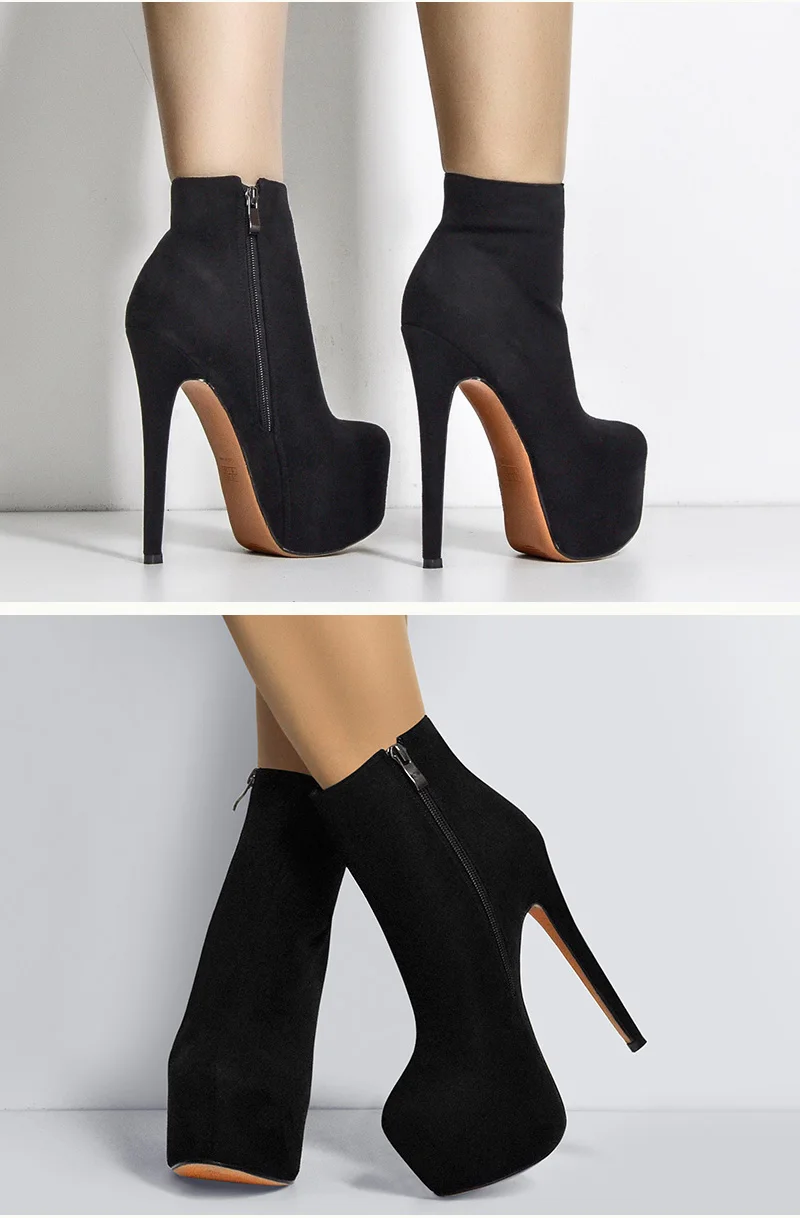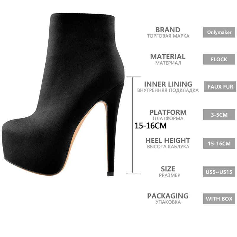 Женские ботинки с круглым носком Onlymaker, ботильоны Patform, черные, красные, из флока, на шпильке, с боковой молнией, на высоком каблуке 16 см