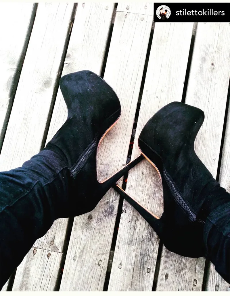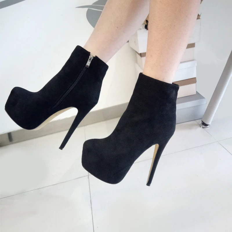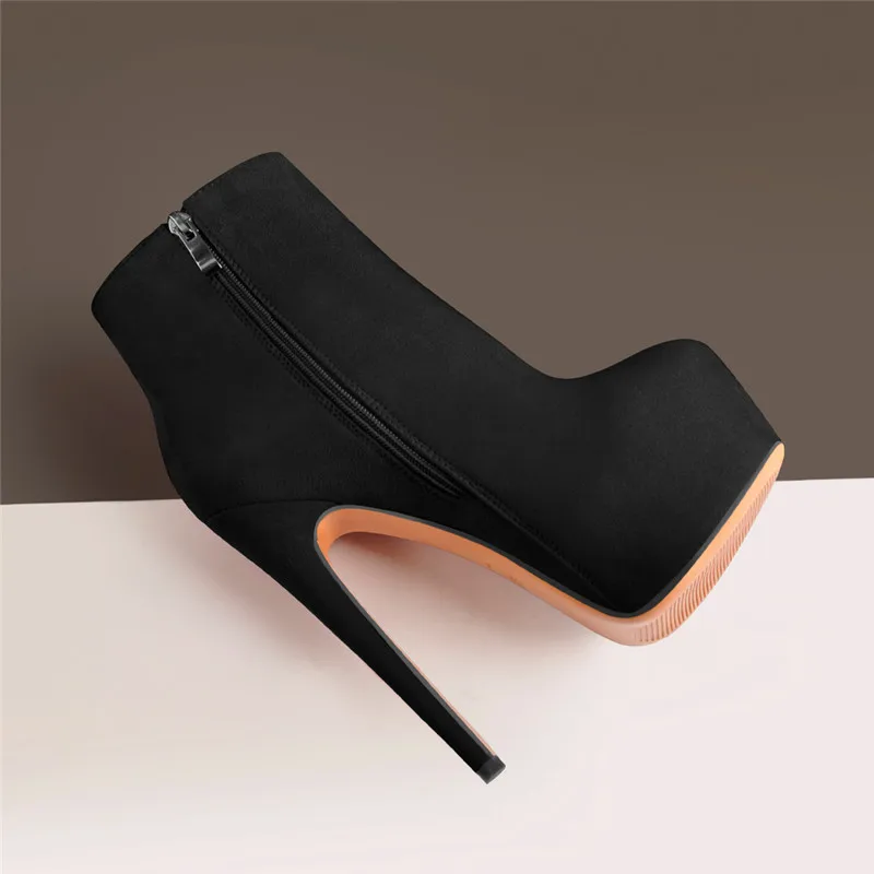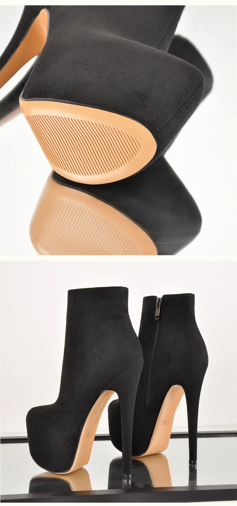 Женские ботинки с круглым носком Onlymaker, ботильоны Patform, черные, красные, из флока, на шпильке, с боковой молнией, на высоком каблуке 16 см