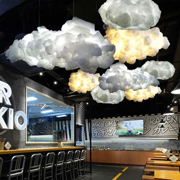 Плавающая люстра с белыми облаками, декоративные облака, свет, лобб...