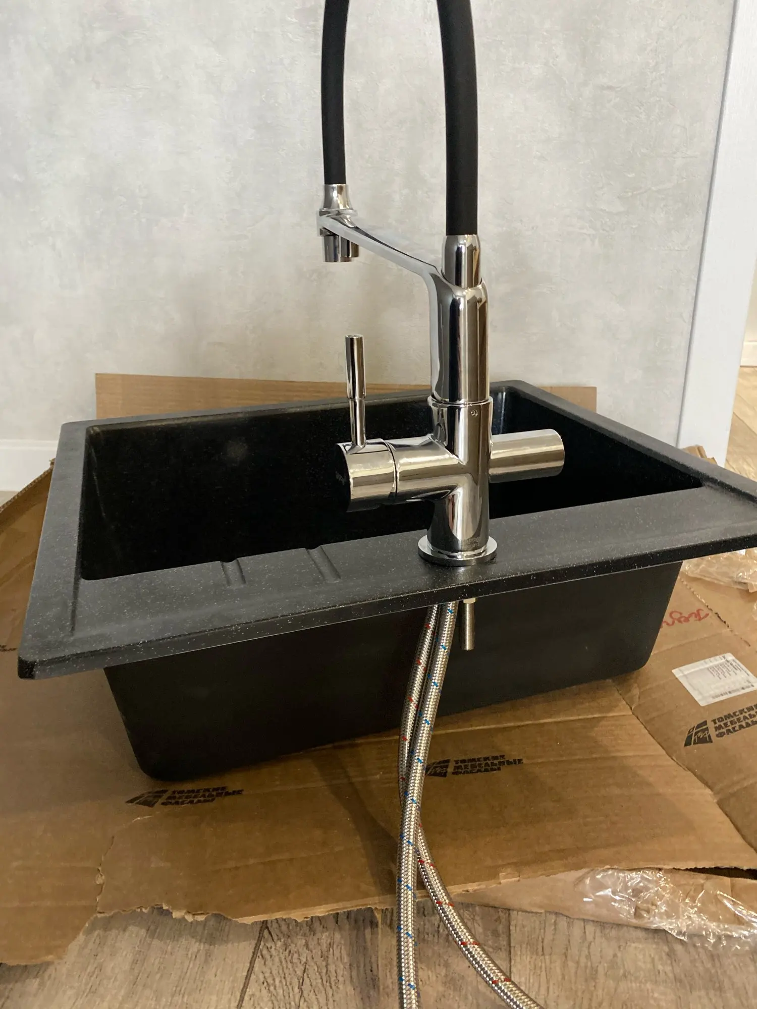 Внешне отличный смеситель, мощный такой, тяделый. Еще не устанавливали кухню, позже дополню отзыв. продавцу большое спасибо за обратную связь. Пришел в фирменной коробке, принес курьер в квартиру.