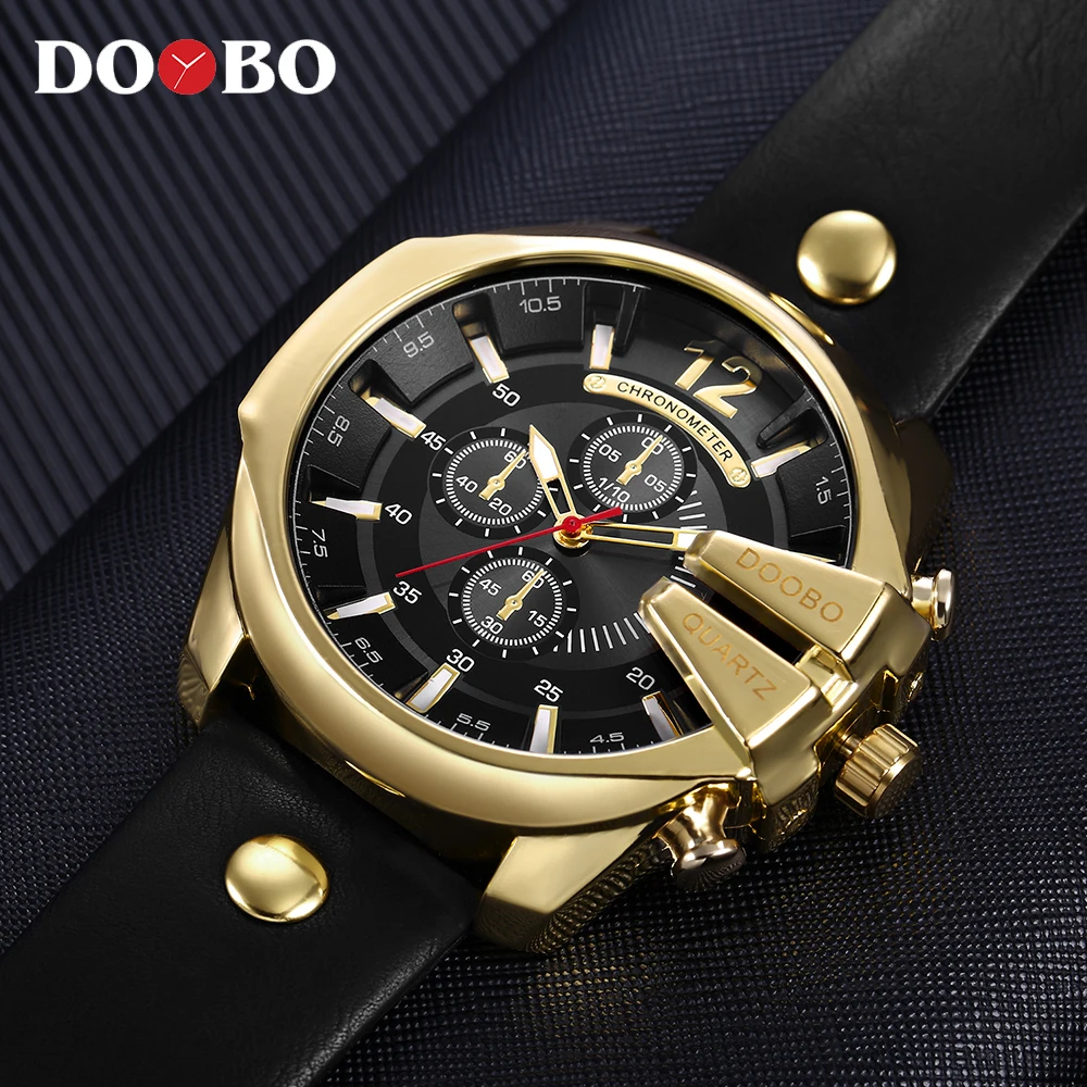Мужские наручные часы DOOBO, брендовые роскошные золотые часы с кож...
