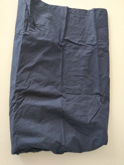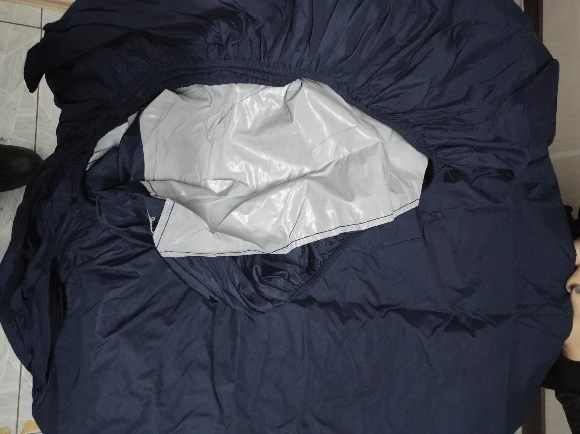 Por fin llegó. Se demoró casi un mes. Aún no lo abro, porque aún no instalo la cama. Supongo una vez que lo haga agregaré comentario correspondiente, pero la tela se siente como un forro duro. Es azul marino pero en la foto se ve más oscuro de lo que es en realidad