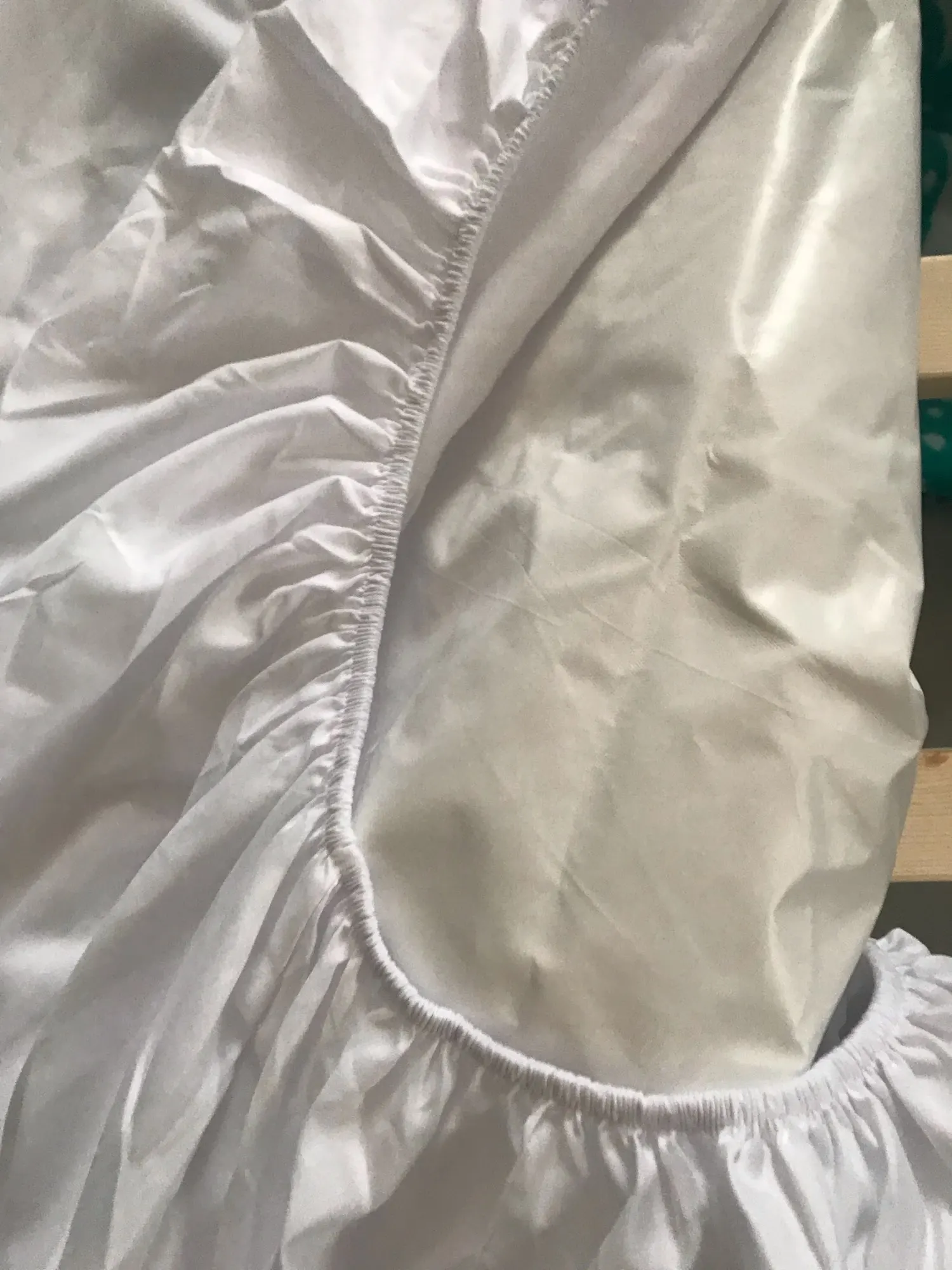 простынь хорошая. Воду не пропускает. Маленький ребенок уже проверил несколько раз) Матрас на нашей кровати сухой. простыни на ней конечно соскальзывают. но угловые держатели для простыни. заказанные здесь же на Али. решили эту проблему.