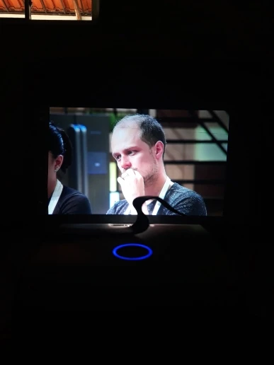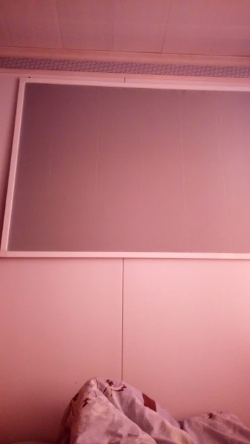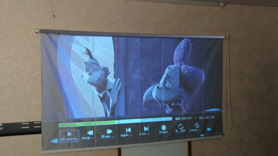 хороший экран,все видно даже при включенном свете,но надо сидеть возле проектора,голова влево вправо не видно ничего. Пол часа посмотрел и снял,на обычной белой стене можно смотреть с любой стороны. Мне проще выключить свет.Снято при включенном свете,сцена темная. Ещё раз повторю экран классный,но мне не зашёл.