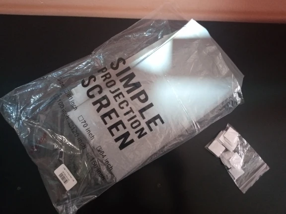 Since the screen is folded, it has a lot of wrinkles. Those wrinkles can be removed with a steamer, but it seems that the screen needs to be stretched tightly when mounting on the wall to prevent any creases. Overall, it seems good.