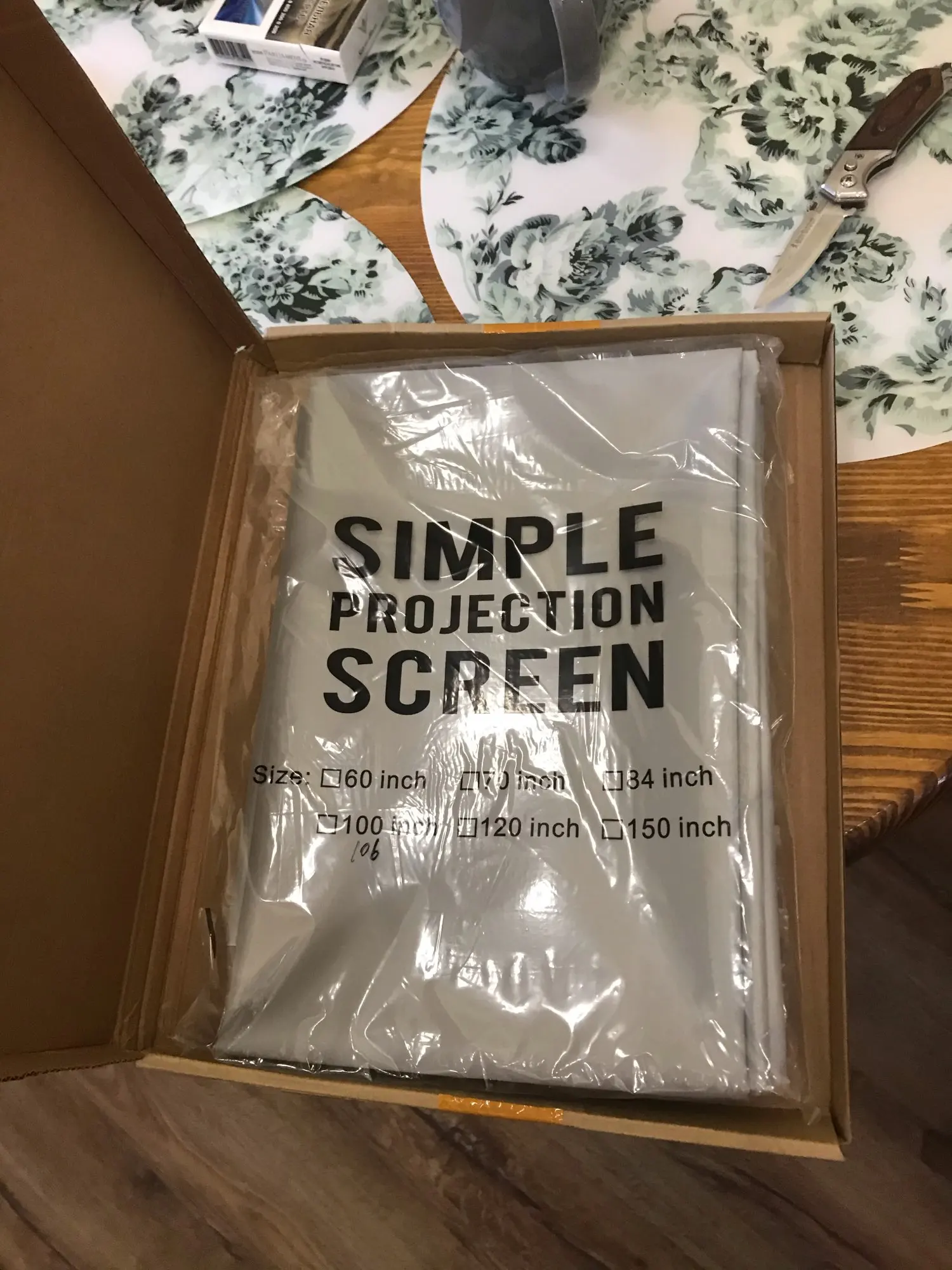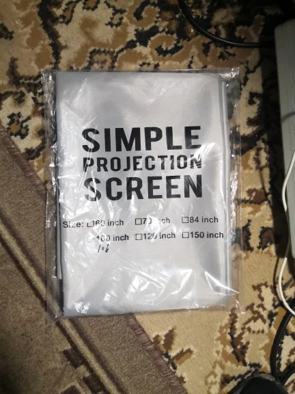 супер быстрая доставка курьером. (Москва) сам экран спорный. если смотреть прям за/под проектором, то картинка очень сочная и яркая. если же сесть на метр в сторону, то на моей серой стене, на которой висит экран, картинка не хуже. а если 1+ метров в сторону, то лучше без экрана. итог. если смотреть одному строго над/под проектором, то имеет смысл. в остальных случаях не рекомендую.
