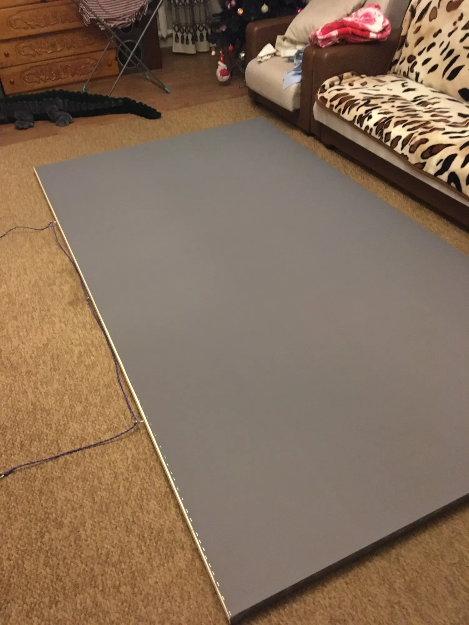 Офигенный экран, теперь как телевизор и днём работает, только правильно для этого проектор надо установить, над головой от 10-20 градусов. Гладили сначала отпариваете, потом утюгом, и то до конца не отгладилось, но когда смотришь проектор, складки не видно, когда выключен видно.