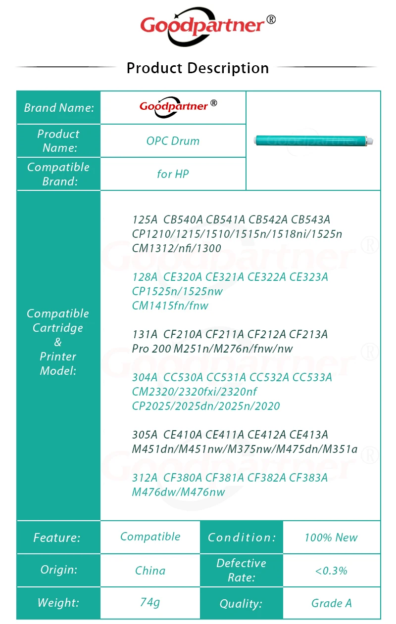 5X 125A CB540A CB541A CB542A CB543A OPC барабан для HP CP1210 CP1215 CP1510 CP1515 cp151515n CP1518ni CP1525n CM1312 CM1312nfi CM1300