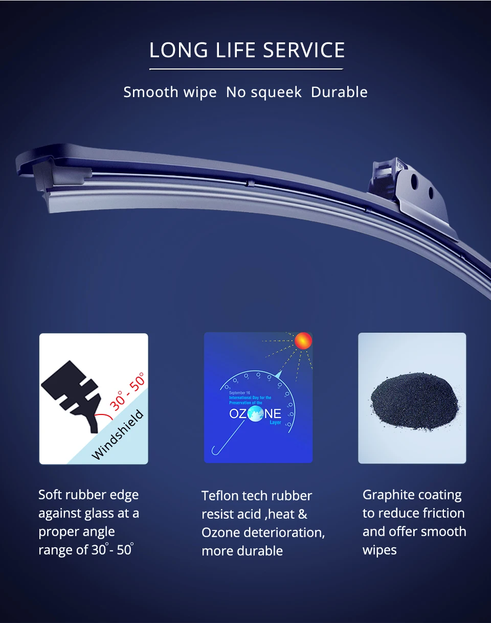 Более четкая видимость.Изогнутая стальная пластина позволяет более равномерно распределить давление на стекло и обеспечивает более плотное прижимание щетки к стеклу, что гарантирует бережное очищение, более четкую видимость и бесшумную работу.