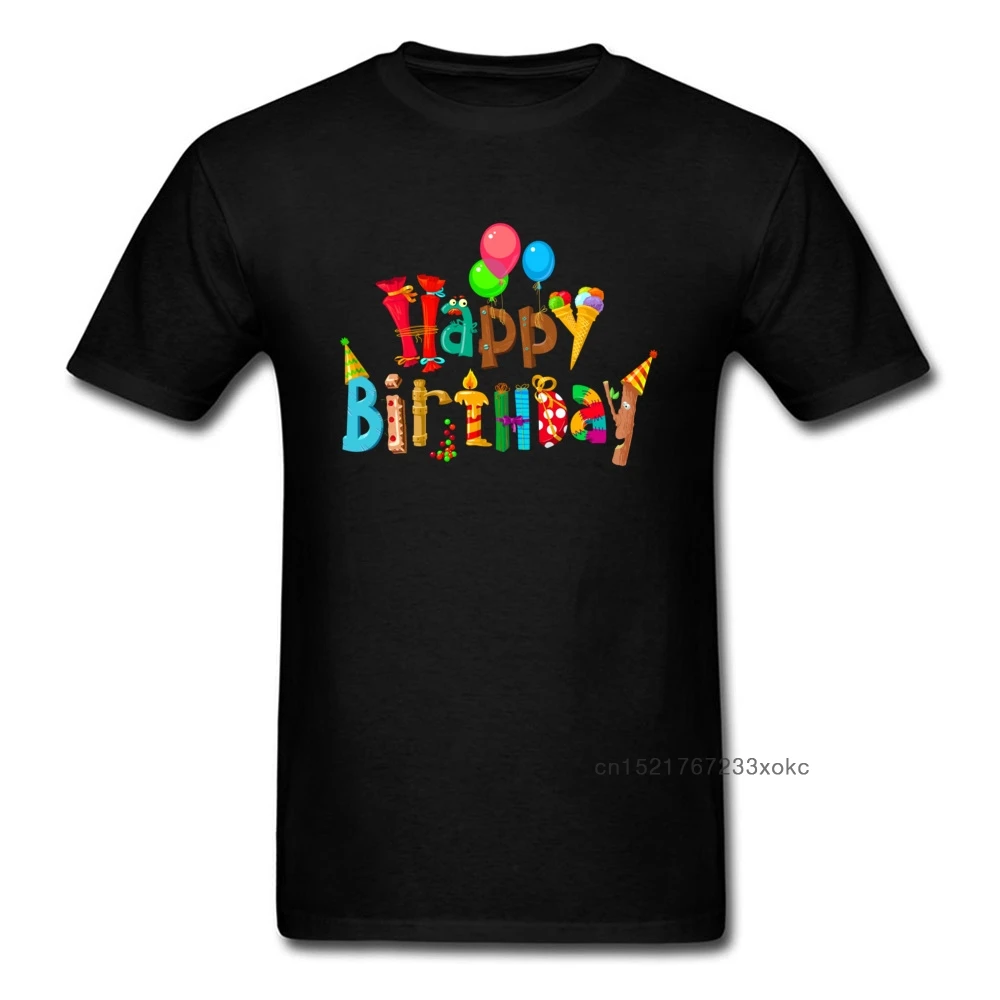 2018 Новый Забавный с днем рождения мультфильм письмо дизайн мужской подарок футболка размера плюс классная черная с коротким рукавом Топы И Футболки