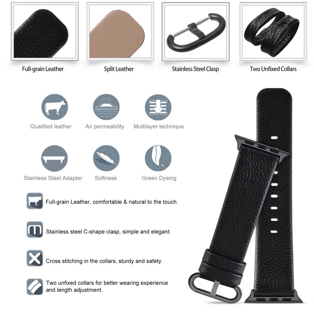 ❤1 х кожаный ремешок для Apple Watch с пряжкой из нержавеющей стали (Apple watch предназначен только для иллюстрации и не входит в комплект).
