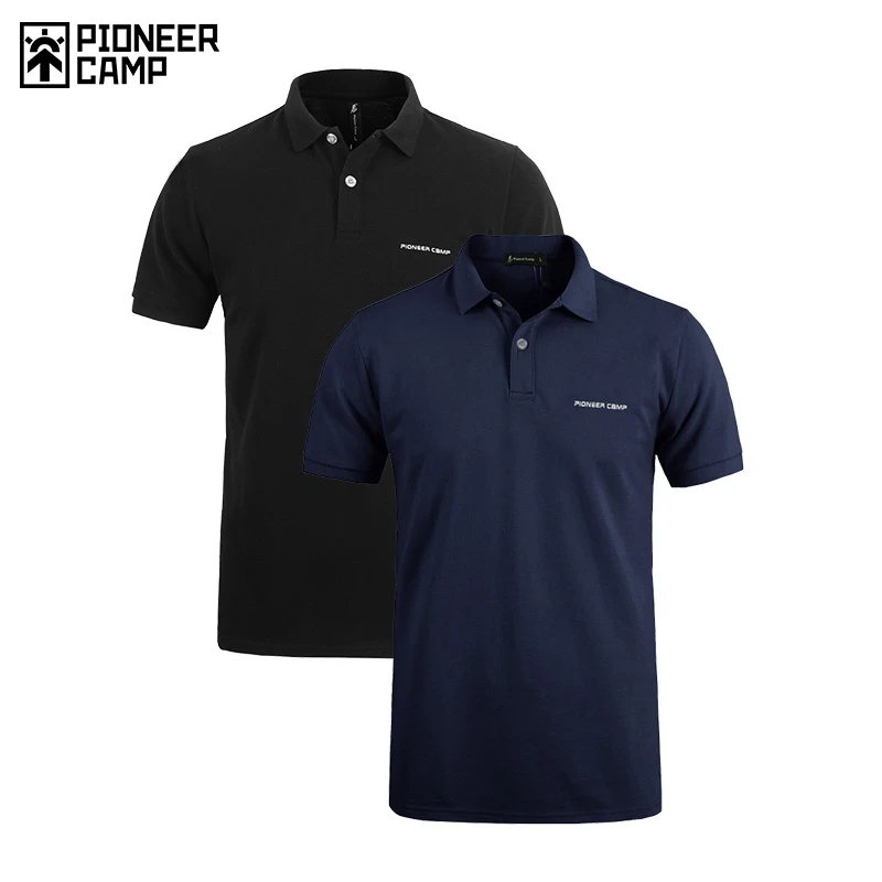 PIONNER лагерь 2-Pack Для мужчин Мужские Поло рубашка Бизнес и Повседневное Твердые мужской Мужские Поло рубашка короткий рукав мягкой темно-цвет синий, черный; Большие размеры 3443 pack из 2