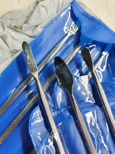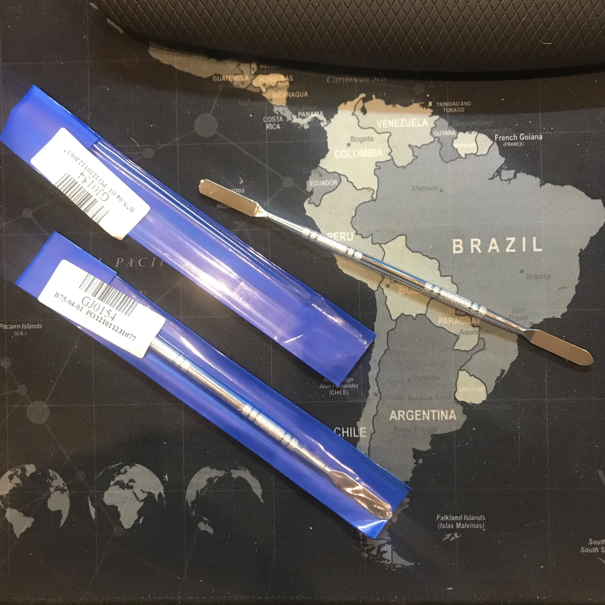 заказывал лопатки первого вида в количестве 4 штук. Качество изготовления хорошее, ржавчины не было. Каждая лопатка была упакована в свою производственную упаковку. Как и на фото - с одной стороны закругленный конец лопатки, с другой - заостренный. Длина общая - 174 мм, ширина лопатки - 6 мм, длина лопатки - по 26 мм с каждой стороны, ручка диаметр - 5 мм. В руке лежит удобно, при сгибании в месте лопатки и ручки с приличным усилием - не гнется. Магнитом примагничивается. Советую брать, не пожалеете.