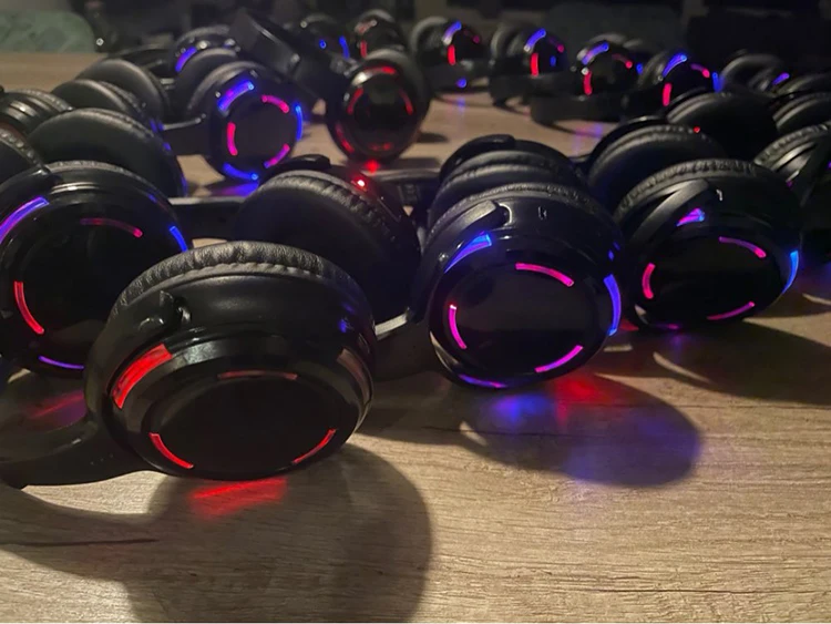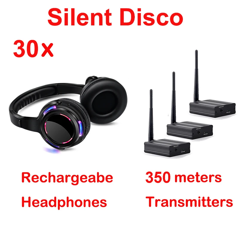 Профессиональные бесшумные дискотеки на расстоянии 1500 футов, 30 светодиодный ных наушников, 3 передатчика, для диджеев, клувечерние, встреч, трансляции