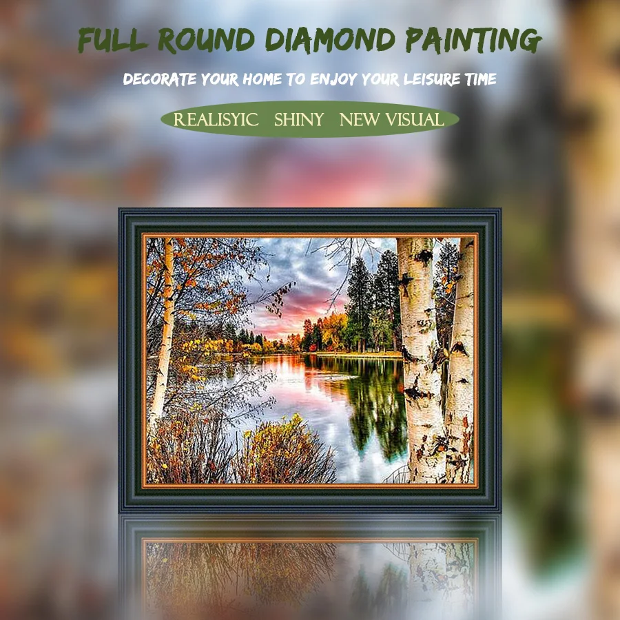 Алмазная вышивка сделай сам, круглые мозаики для вышивки крестиком, полное покрытие 100%, алмазная вышивка с пейзажем, осенним лесом