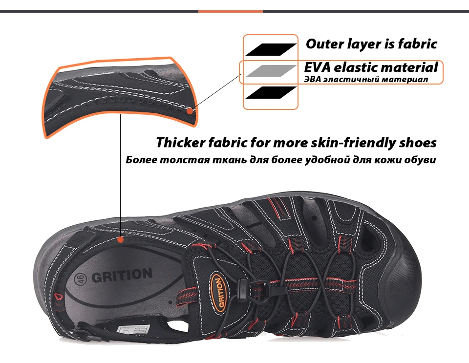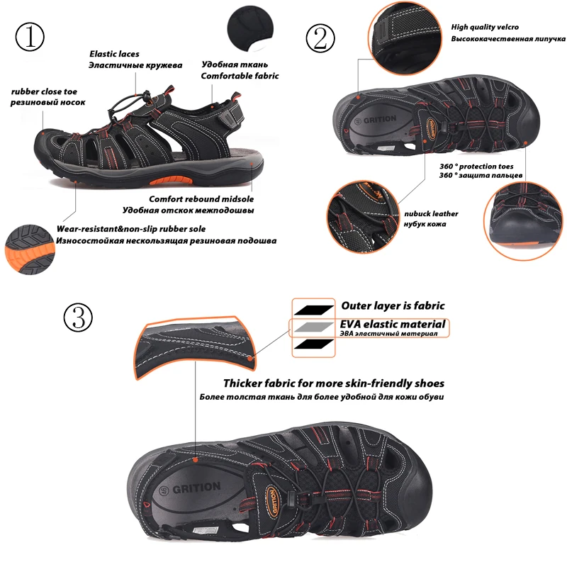 GRITIONЛетняя обувь; пляжные Мужские сандалии с закрытым носком; Ка...