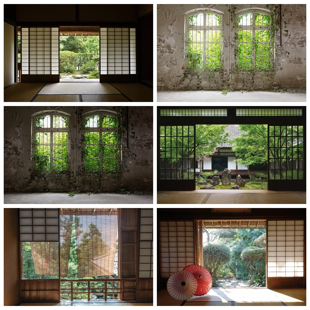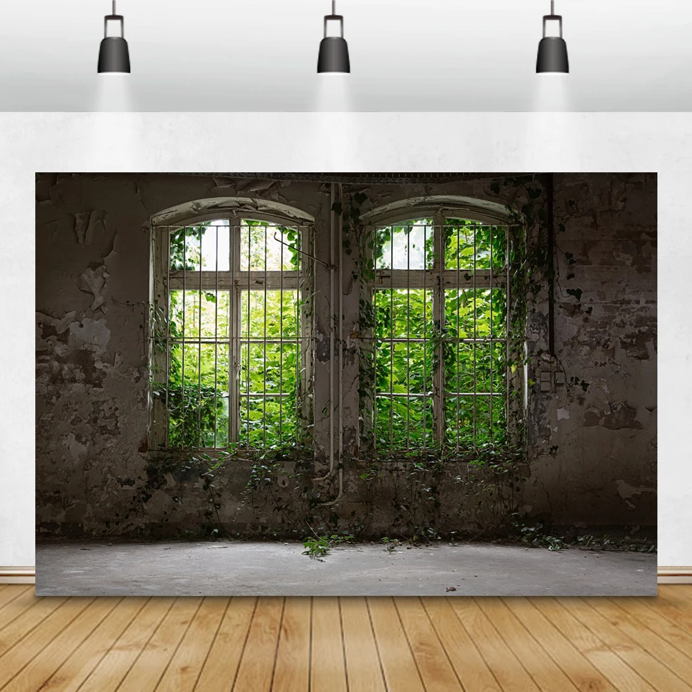 Фон для фотосъемки Laeacco с изображением старого дома, окна, пейзажа, зеленые деревья, лоза, винтажный гранж, детский портрет