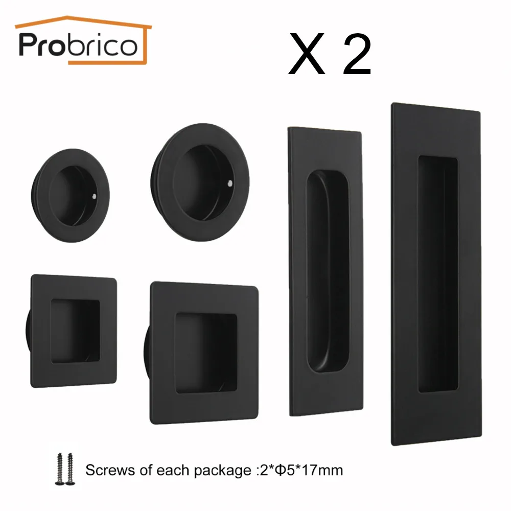 Черные встраиваемые ручки Probrico для дверей кухонных шкафов, из нержавеющей стали, круглыеквадратныеовальные мебельные, 2 шт.
